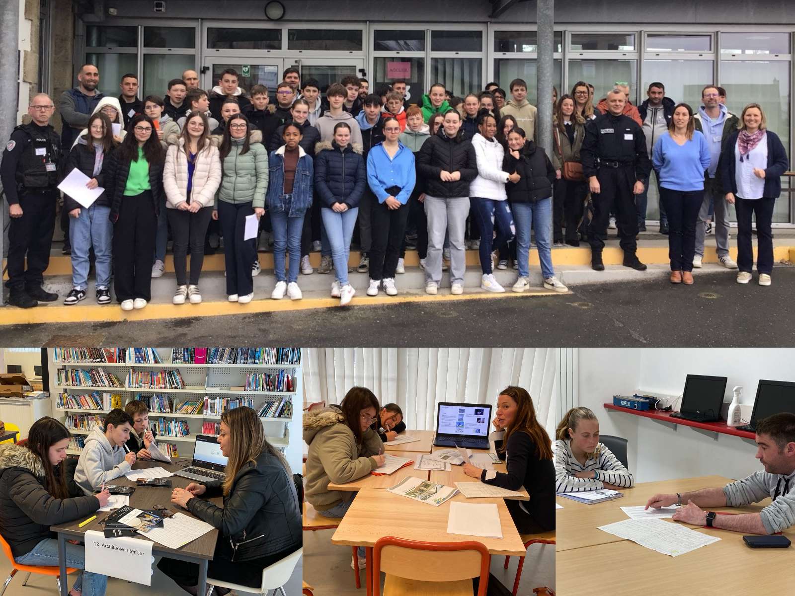 Les élèves de 4ème / 3ème ont pu se renseigner sur différents secteurs d’activité et poser directement les questions aux professionnels. Ils les ont interrogés notamment sur leur parcours, les formations, les avantages et inconvénients des différents métiers et les compétences à acquérir.