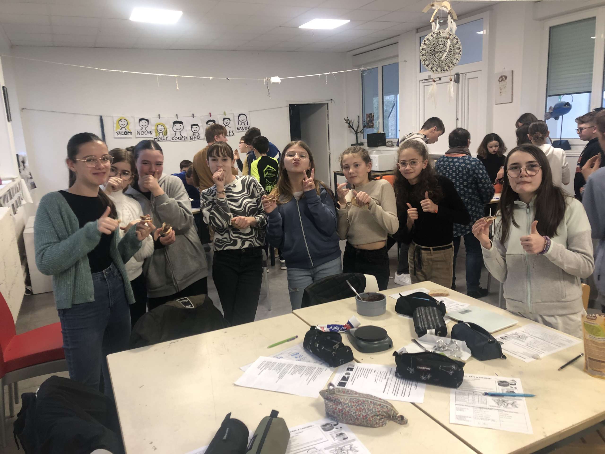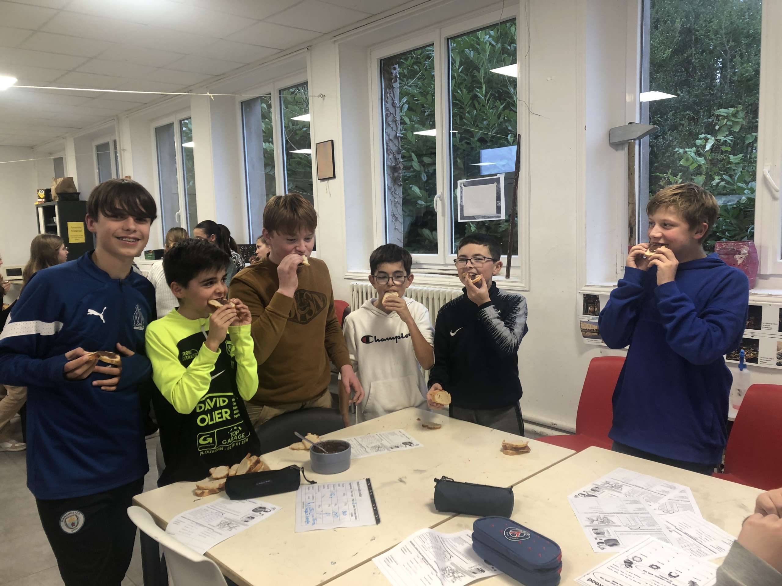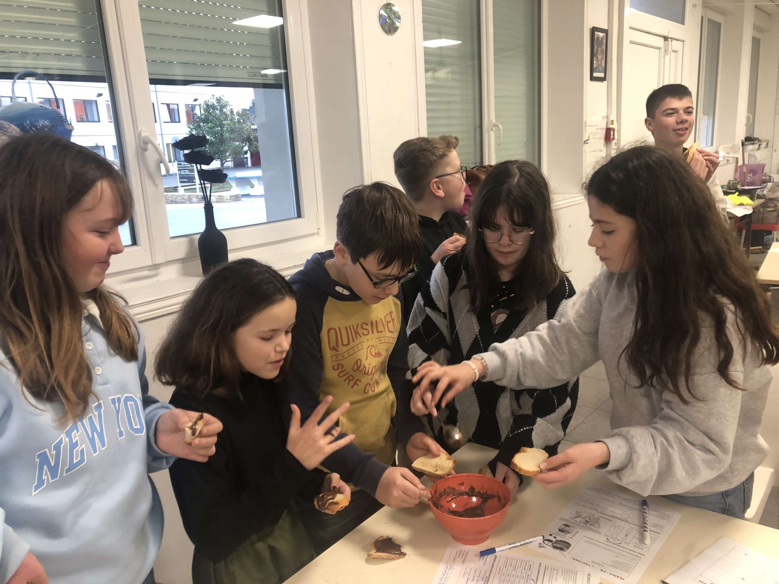La semaine du 18 décembre, les 5ème2 et les 5ème6 ont fabriqué et dégusté de la pâte à tartiner maison pour leur dernier cours d’histoire-géographie avant Noël.