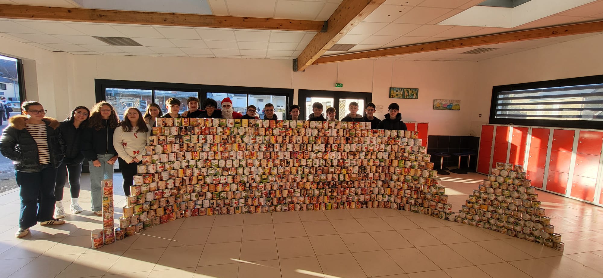 Mur contre la faim : un bel élan de solidarité en faveur des Restos du Coeur. Cette année, les élèves ont établi un beau record avec 974 boîtes, récupérées juste avant les vacances par les bénévoles de l’association. Un grand bravo à tous pour ce mur solidaire qui fait chaud au cœur !