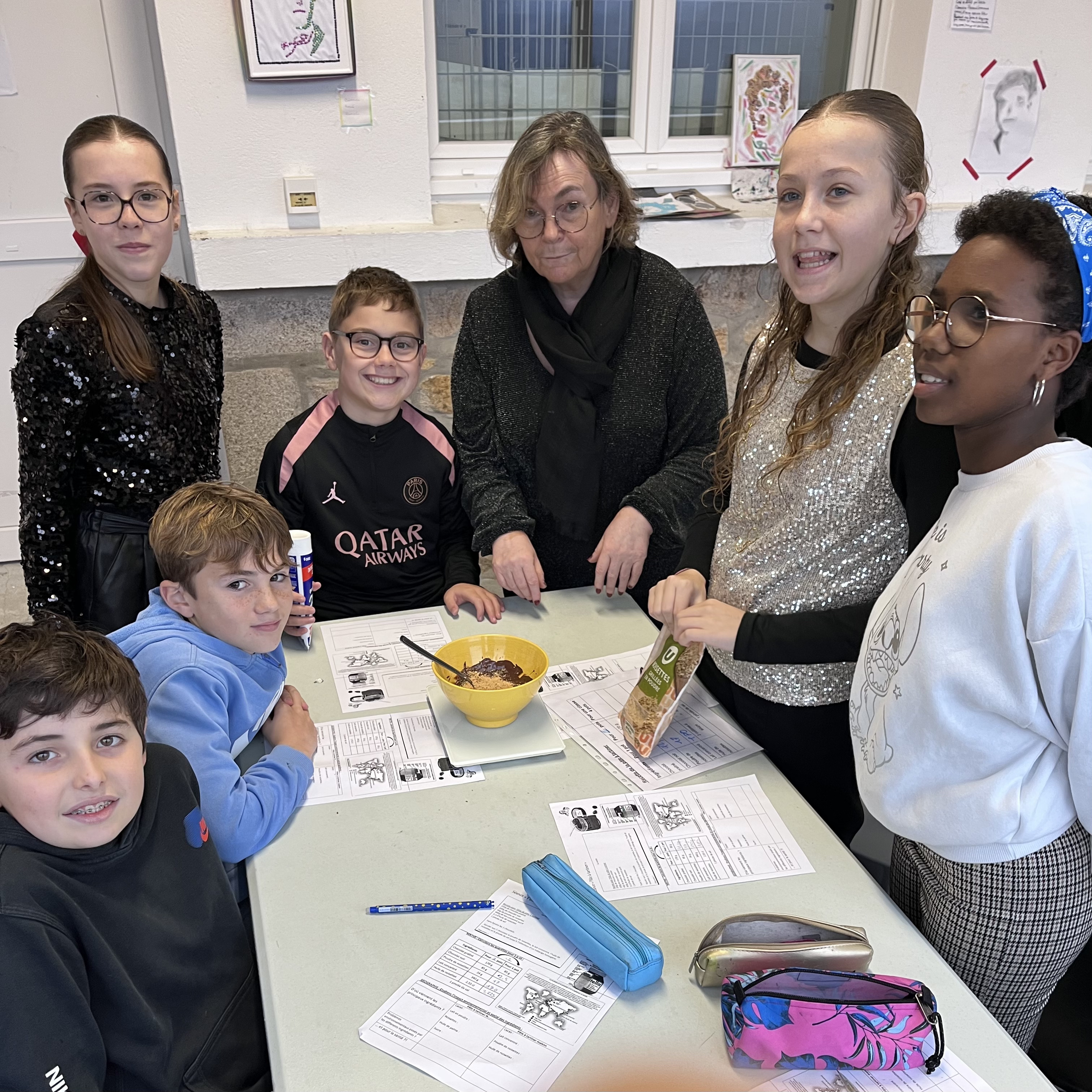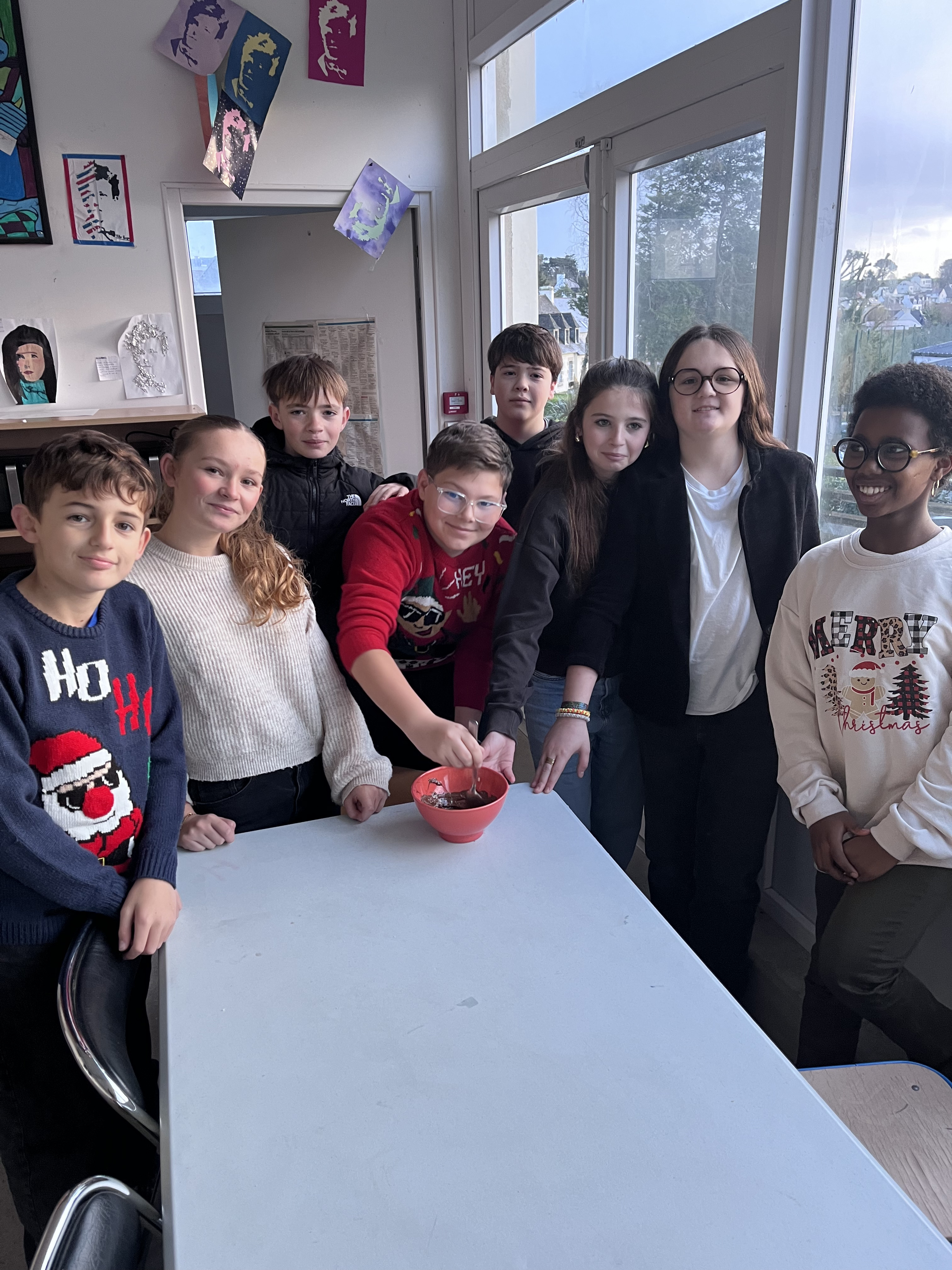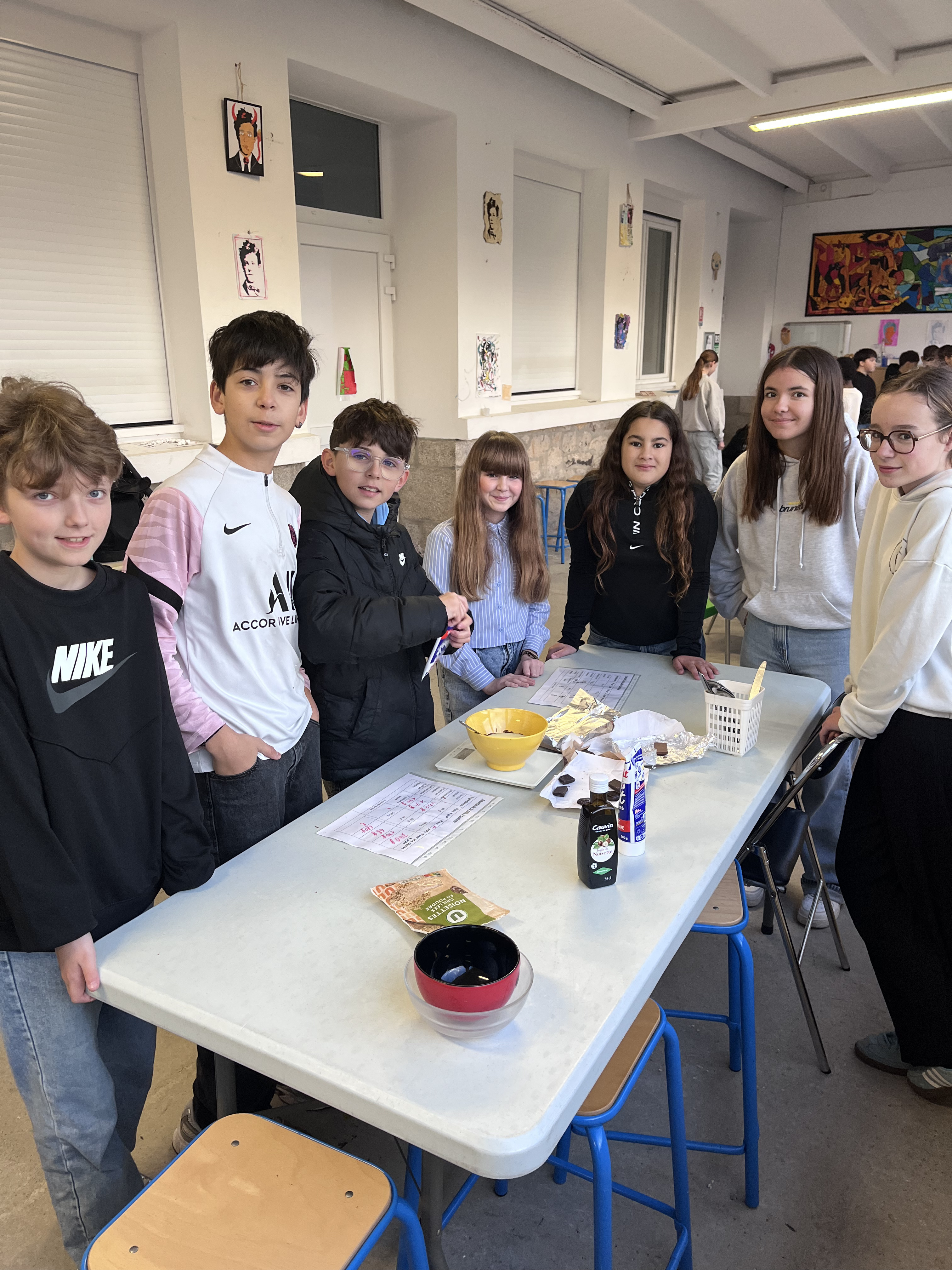 Les 5ème 4 et les élèves de 6ème du dispositif ULIS, ainsi qu’une partie des 5ème 7 ont fabriqué et dégusté de la pâte à tartiner maison pour leur dernier cours d’Histoire-Géo de 2025. Ils se sont régalés mais ils ont aussi un peu travaillé ! Des calculs pour la recette et de la Géo en réfléchissant à l’impact environnemental de notre consommation d’huile de palme… Et ils sont repartis aussi avec une idée de cadeau de Noël DIY (Do It Yourself).