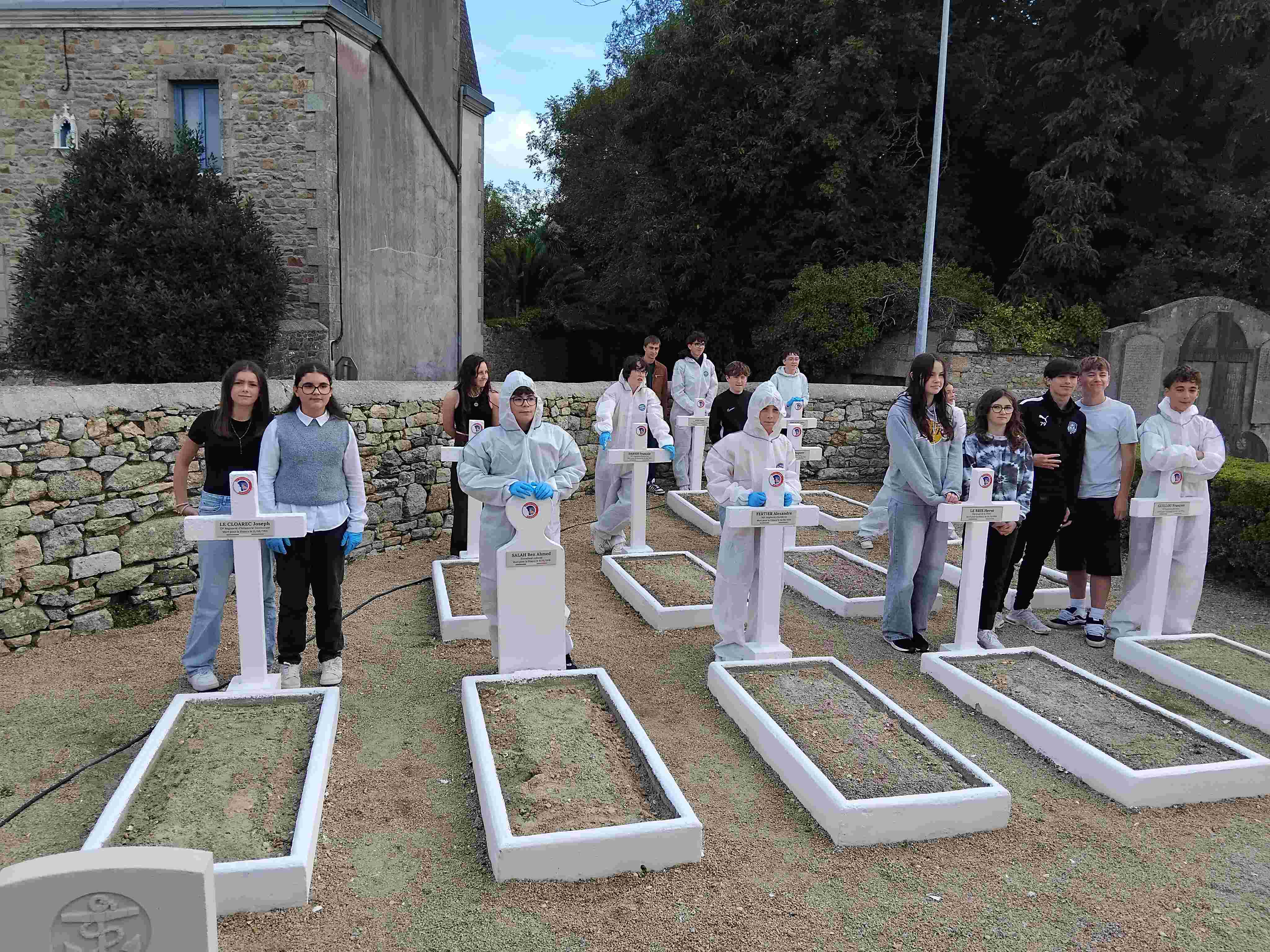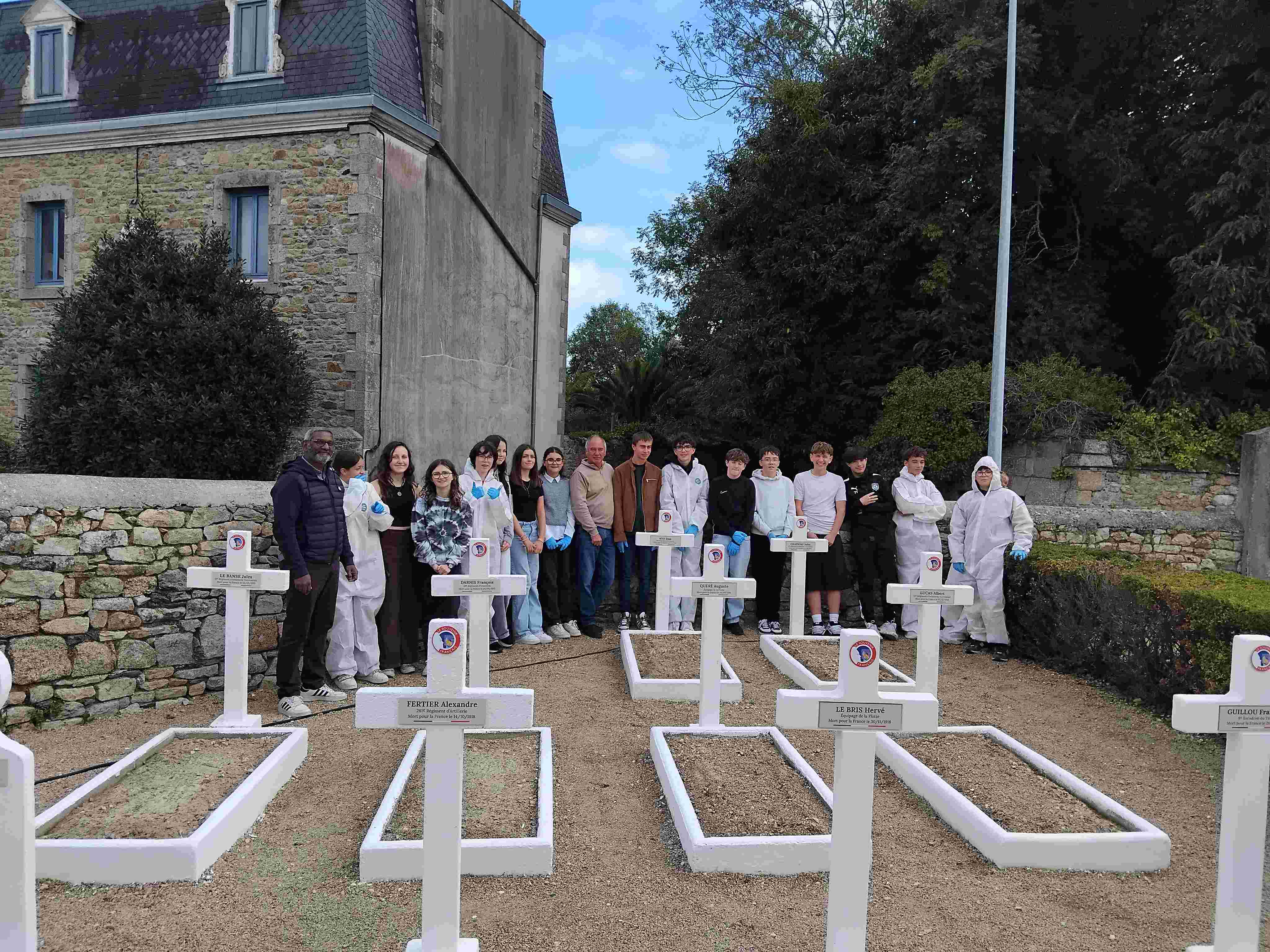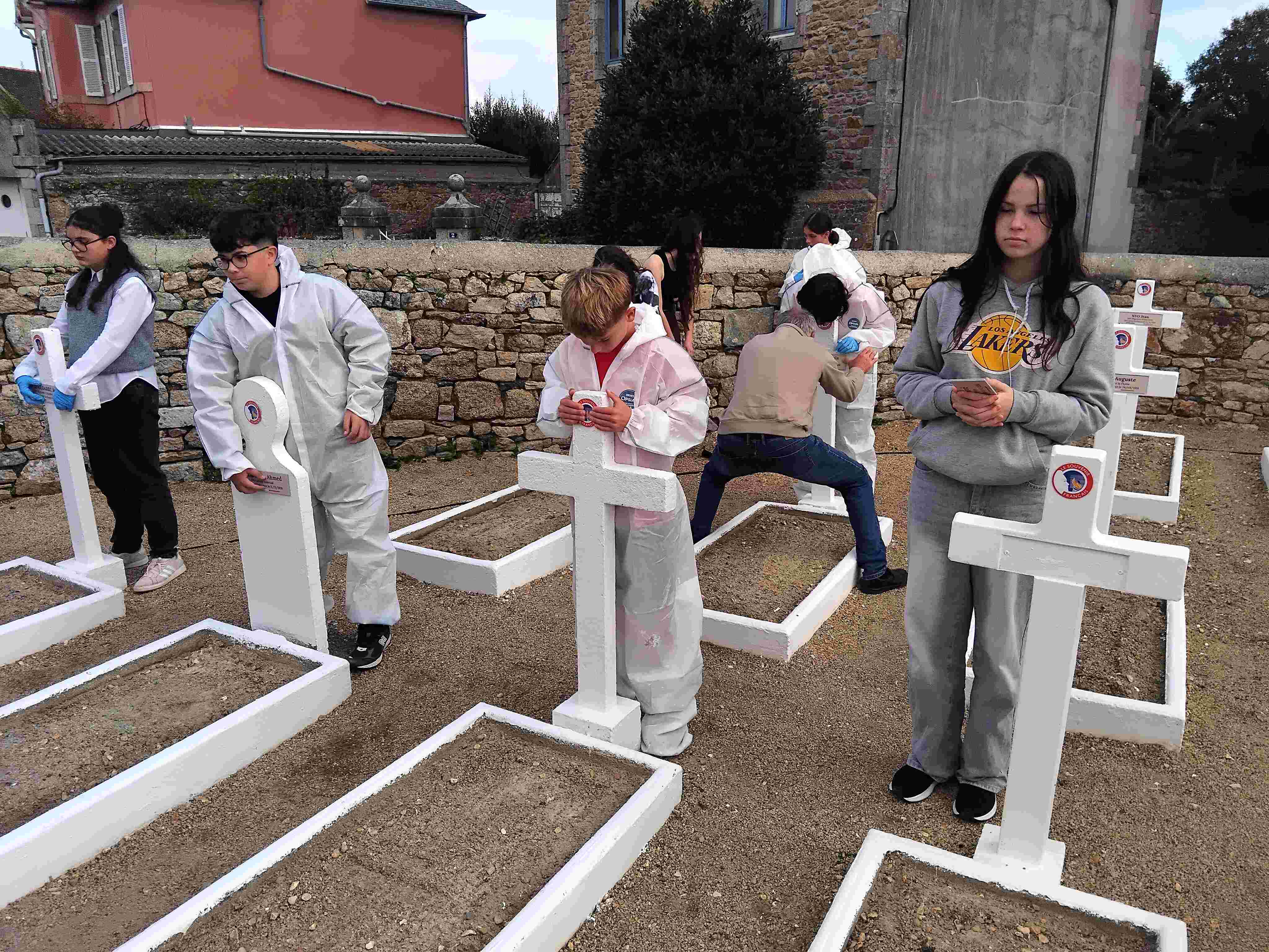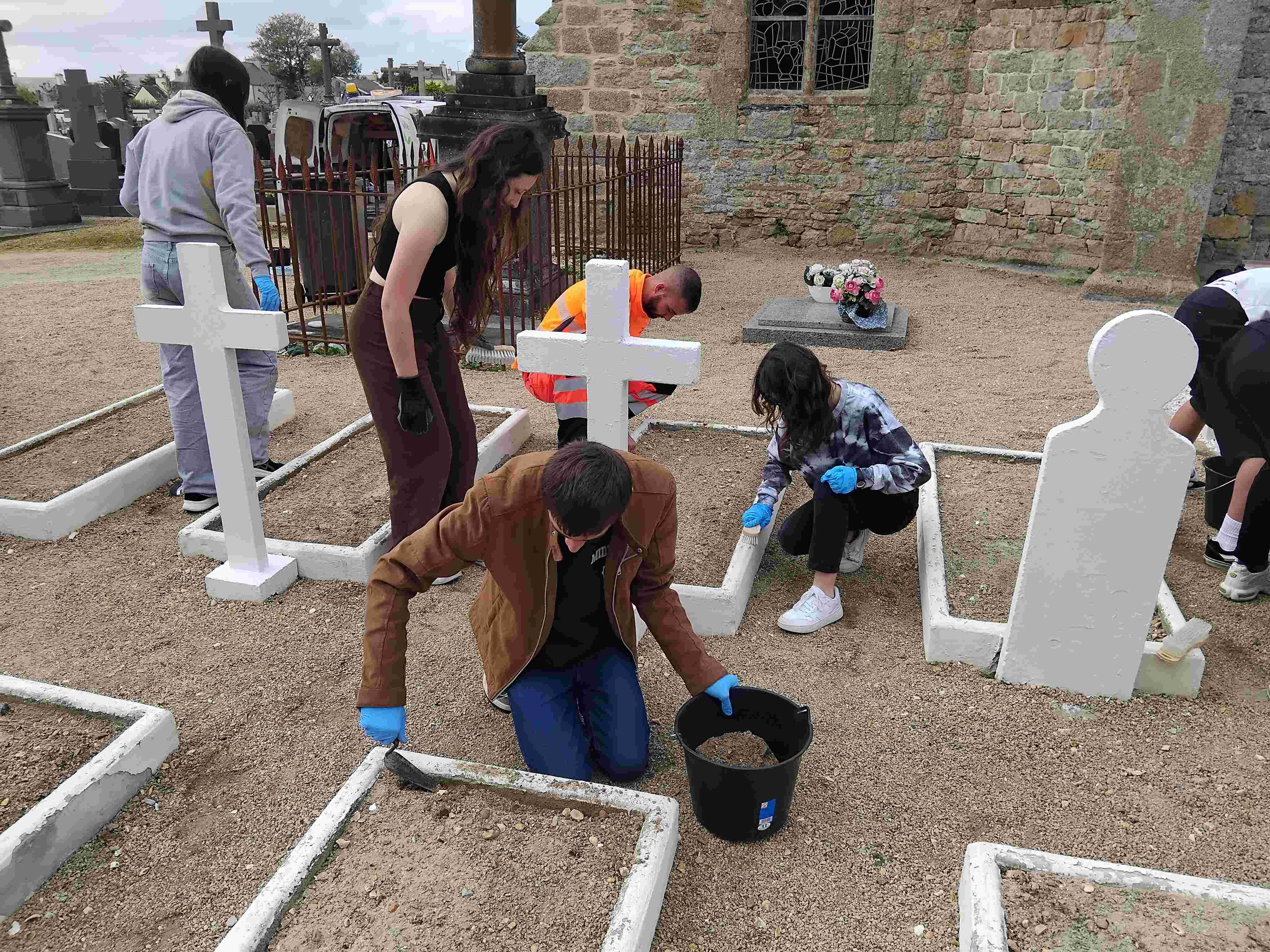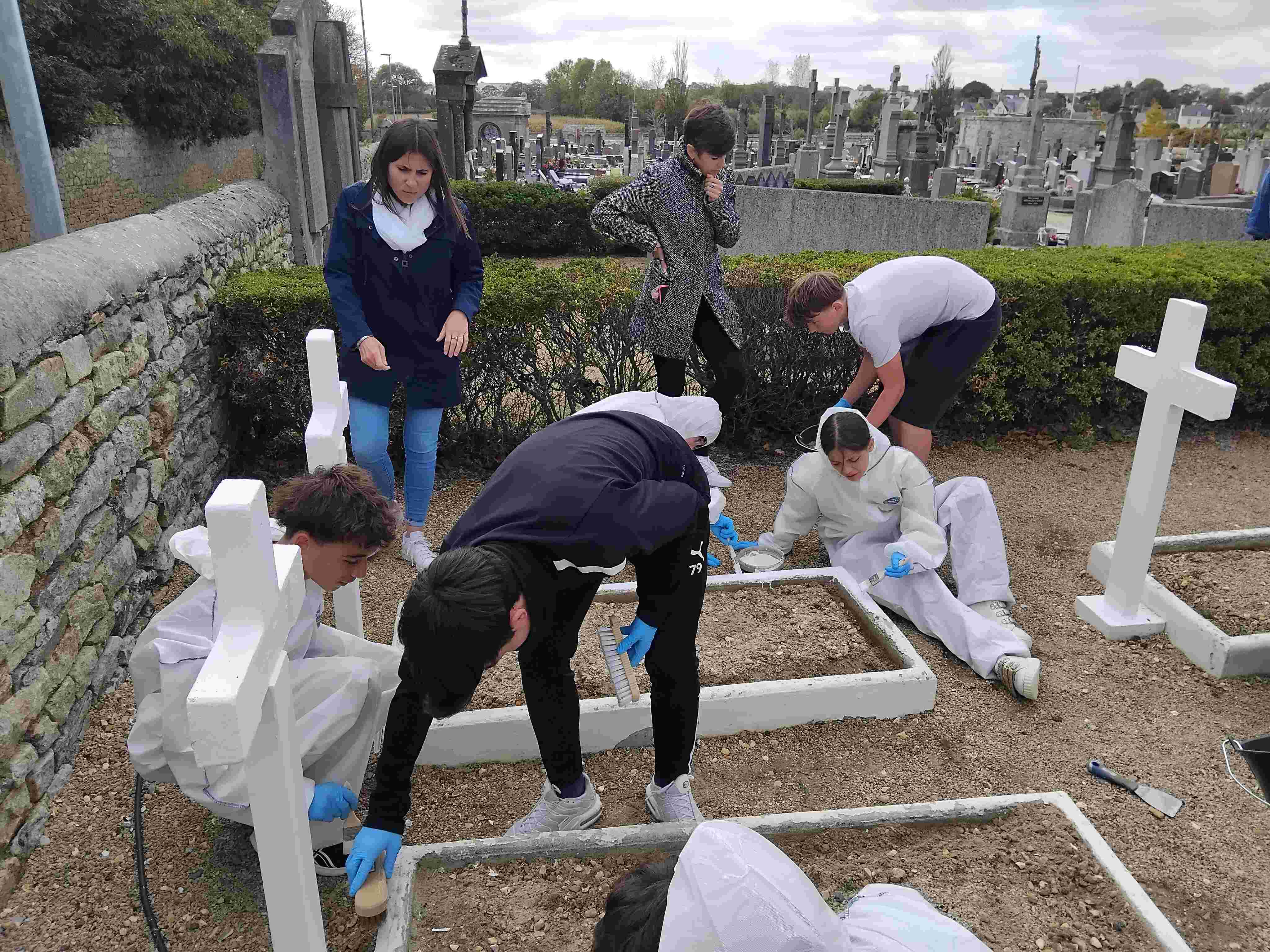 Les élèves ont nettoyé les tombes à l’aide d’une brosse, les ont peintes et ont mis de nouvelles plaques. Ils étaient encadrés par Jean Louis Kichenin, les services techniques de la mairie et leurs enseignantes de DAO.