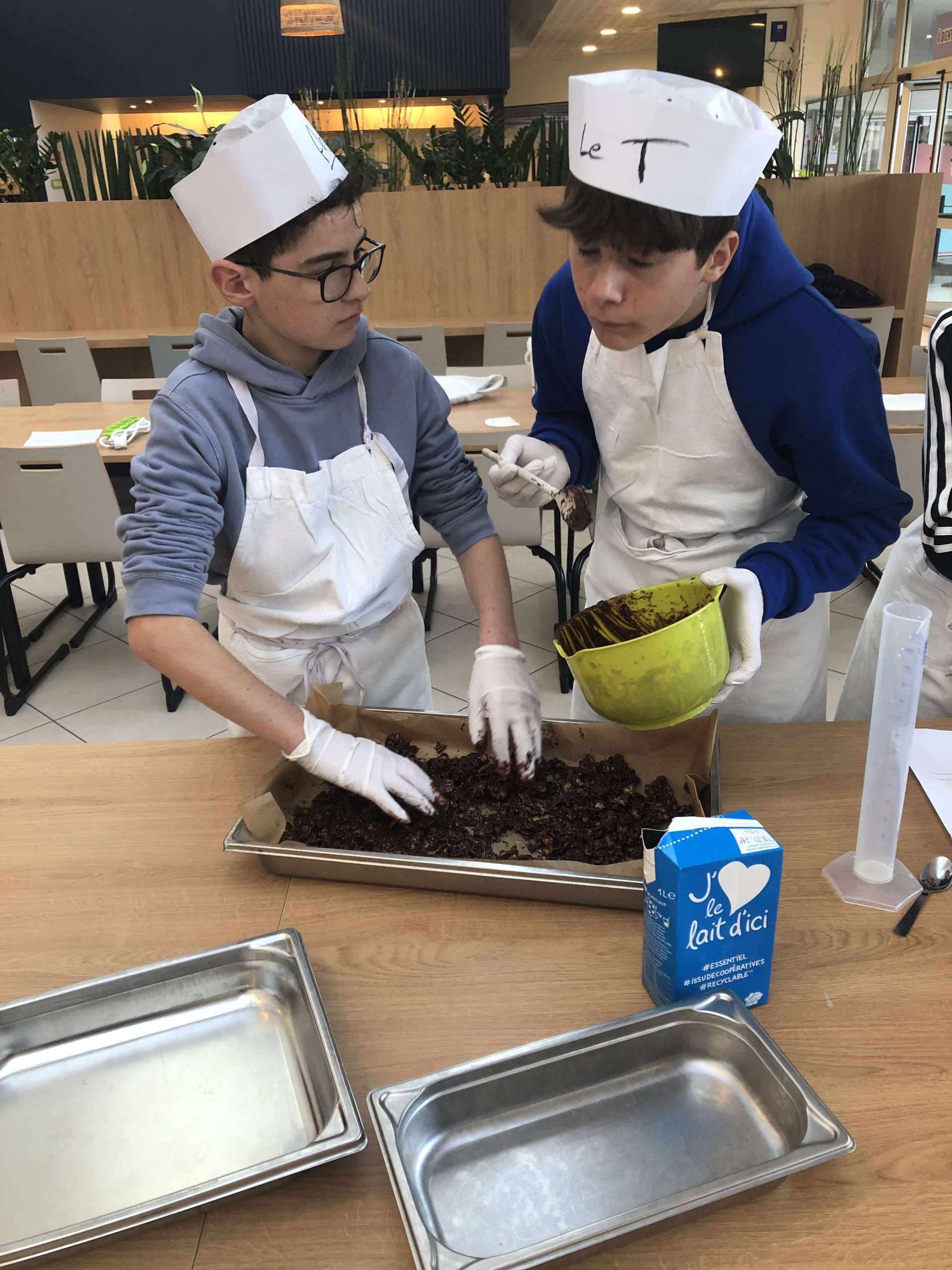 En compagnie de Célia, cheffe du restaurant scolaire du lycée, les 17 élèves ont été initié aux métiers en lien avec le monde de la cuisine, ils ont suivi des recettes basiques et confectionné des cookies, un brownie, des roses des sables, un gâteau au yaourt et des crêpes.