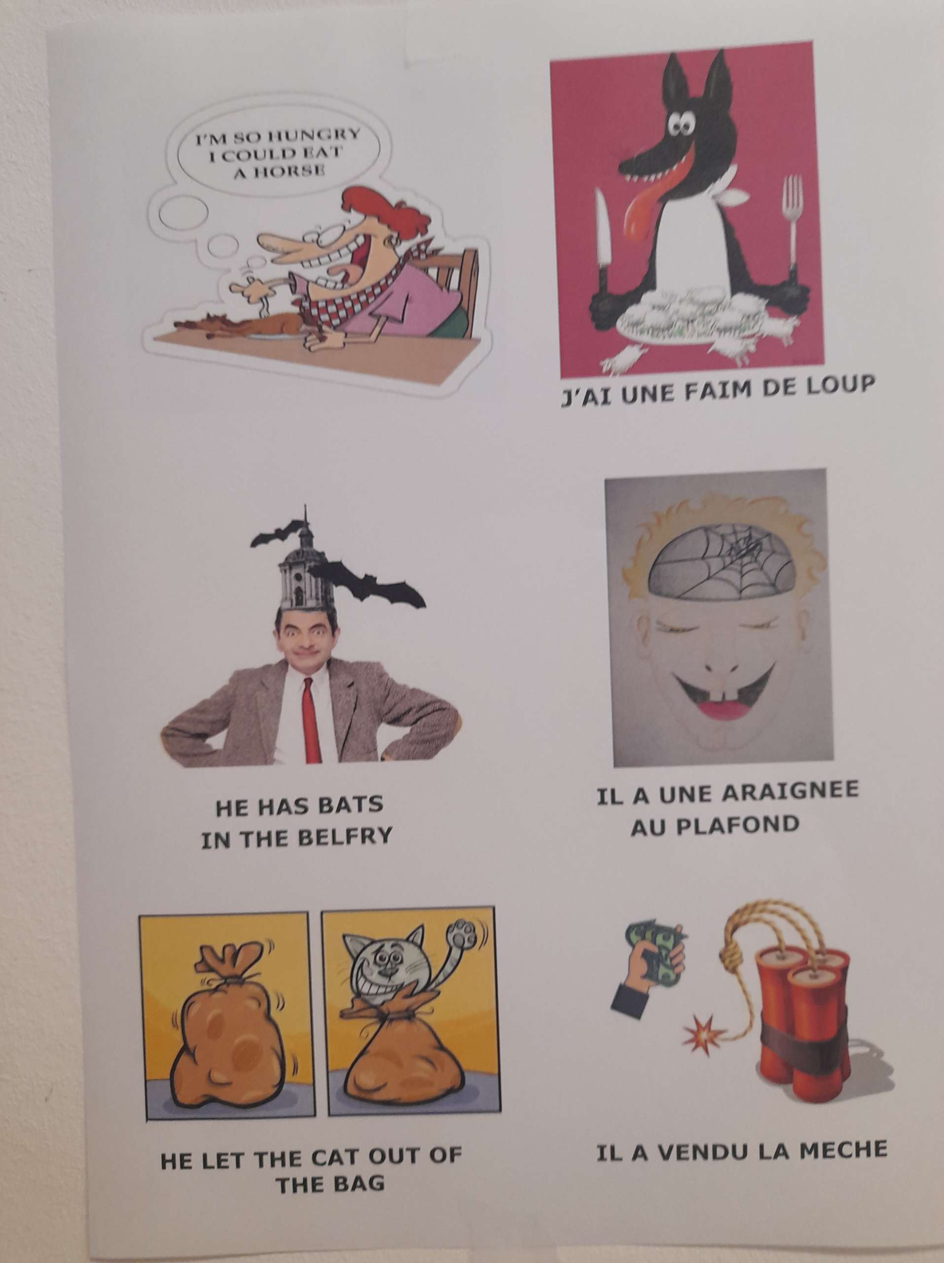 Enfin, les élèves ont travaillé sur les expressions idiomatiques, celles qui ne peuvent pas se traduire. Par exemple :