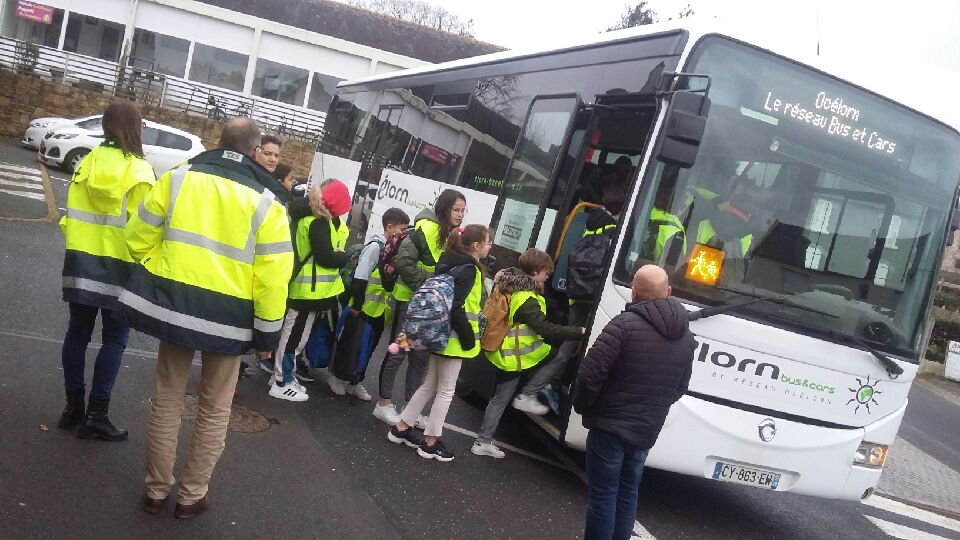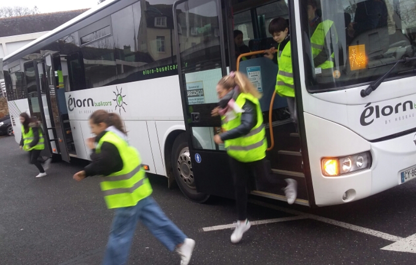 Après la projection d’une vidéo et d’un échange avec l’animatrice sur les bons gestes et les procédures de sécurité à respecter dans les transports en commun, les élèves ont été invités à réaliser des exercices d’évacuation chronométrés à bord d’un car de l’Elorn, garé aux abords du collège.