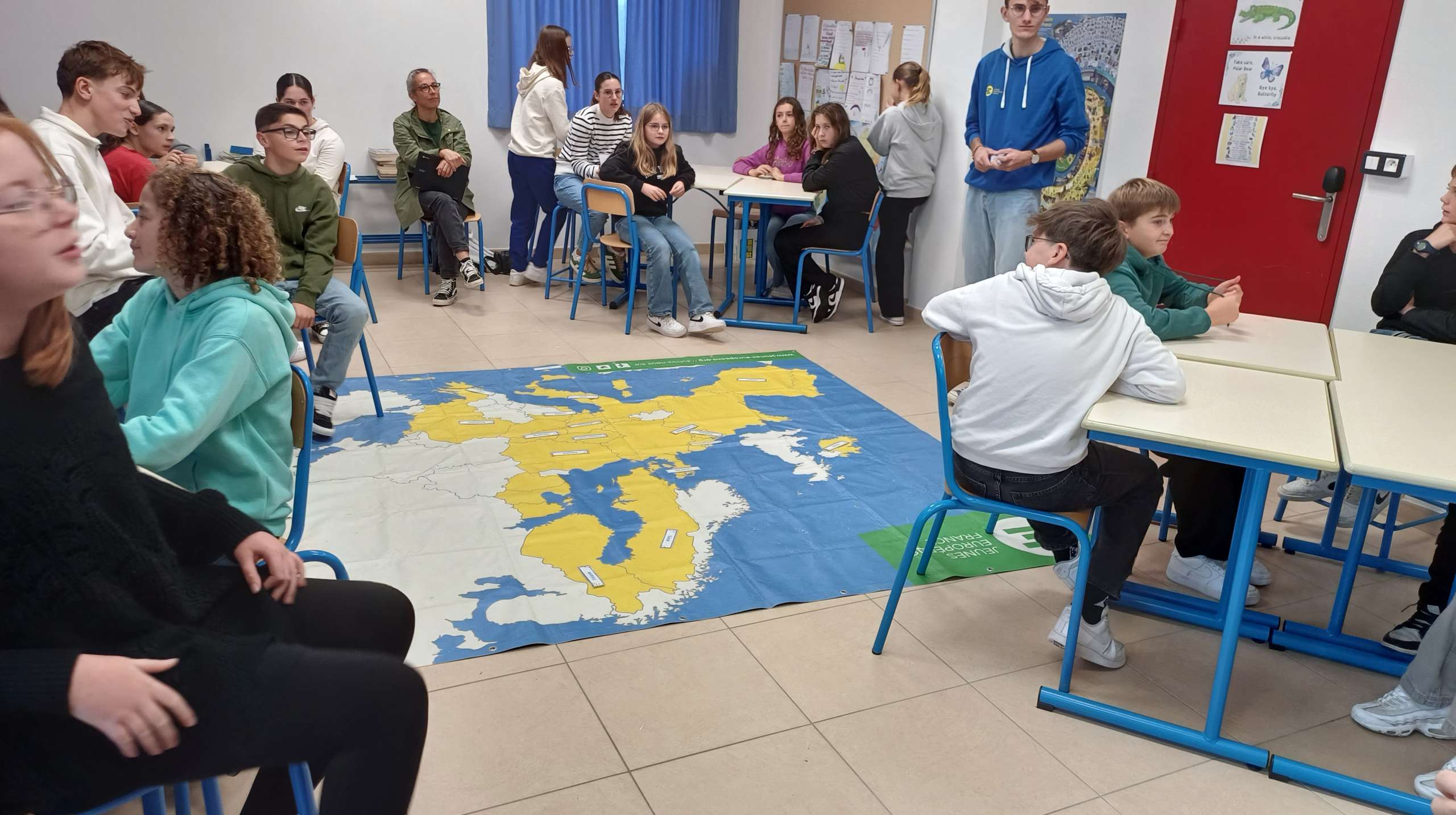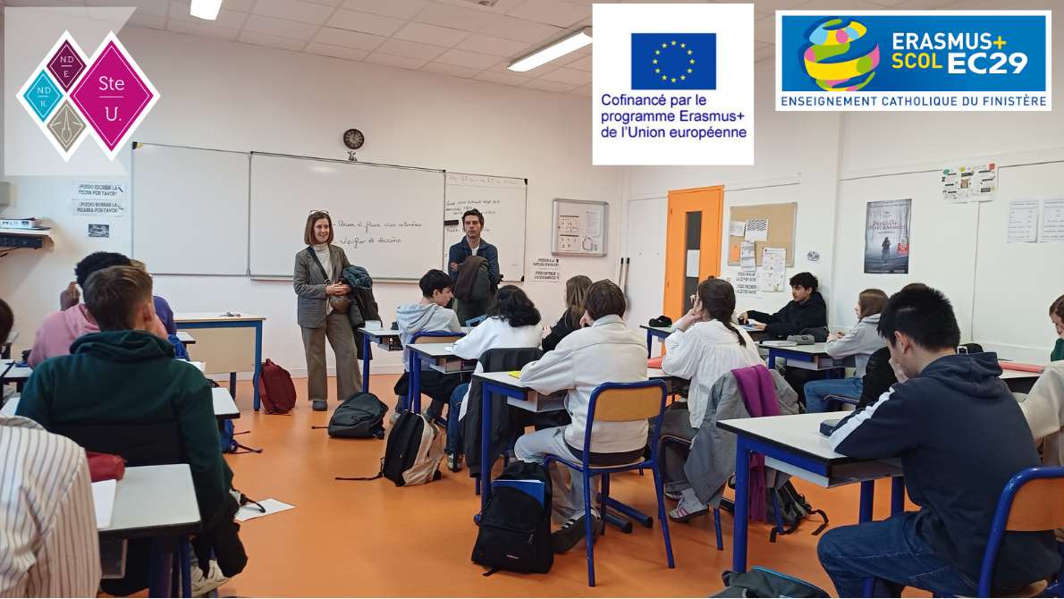Depuis déjà 1 mois, Carolina HAMON, Enseignante Référente pour l’Action Européenne et Internationale (ERAEI) propose des interventions et des animations à tous les niveaux afin de permettre aux collégiens d’approfondir leurs connaissances sur l’Europe, d’autant plus que certaines classes partent en mobilité groupe Erasmus+ dans les mois à venir.