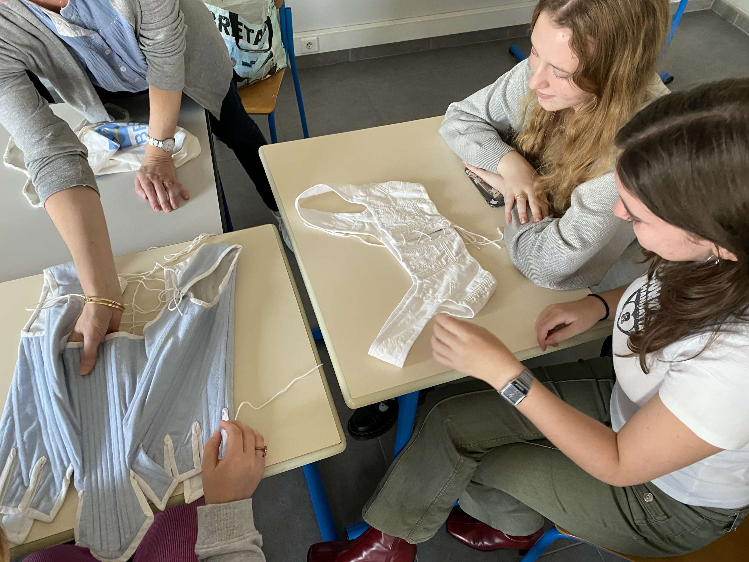 Les élèves se penchent sur des tenues iconiques, et mesurent le nombre de mètres à commander, et la mercerie à prévoir, ce qui n’est pas chose aisée !