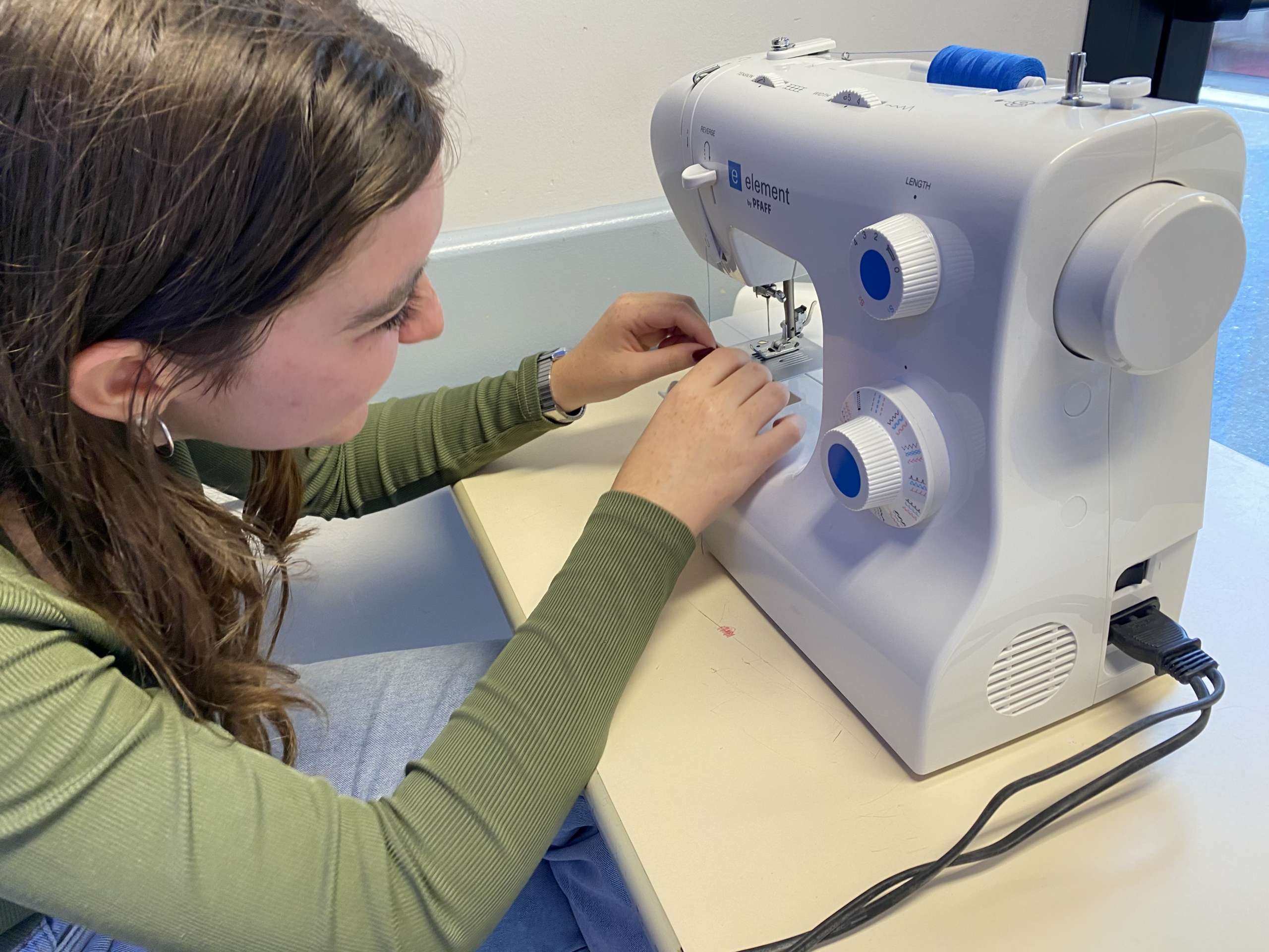 L’atelier est l’occasion d’apprendre à poser un patron sur du tissu, à découper et à ajuster sur le modèle, avant de passer à l’étape de la machine à coudre, tant attendue !