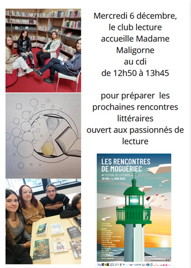 Brigitte Maligorne, l’organisatrice des rencontres littéraires de la Baie qui se dérouleront du 31 mai au 2 juin 2024 à Carantec, a répondu favorablement à l’invitation des élèves du club lecture « le temps des livres », du lycée le Kreisker, à St Pol de Léon.