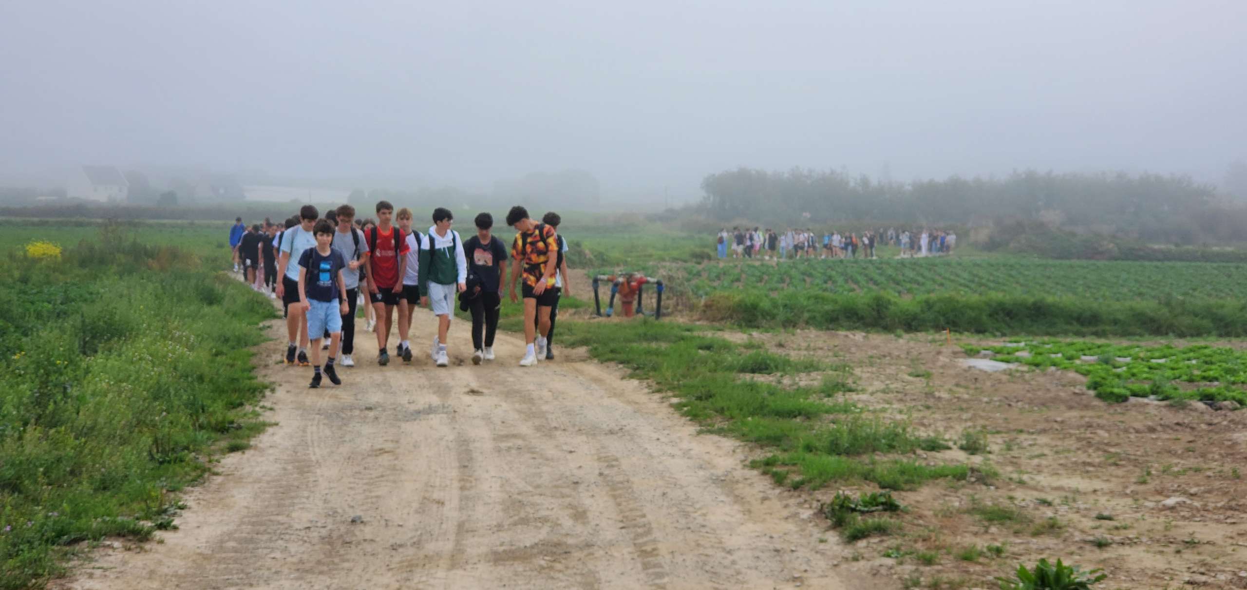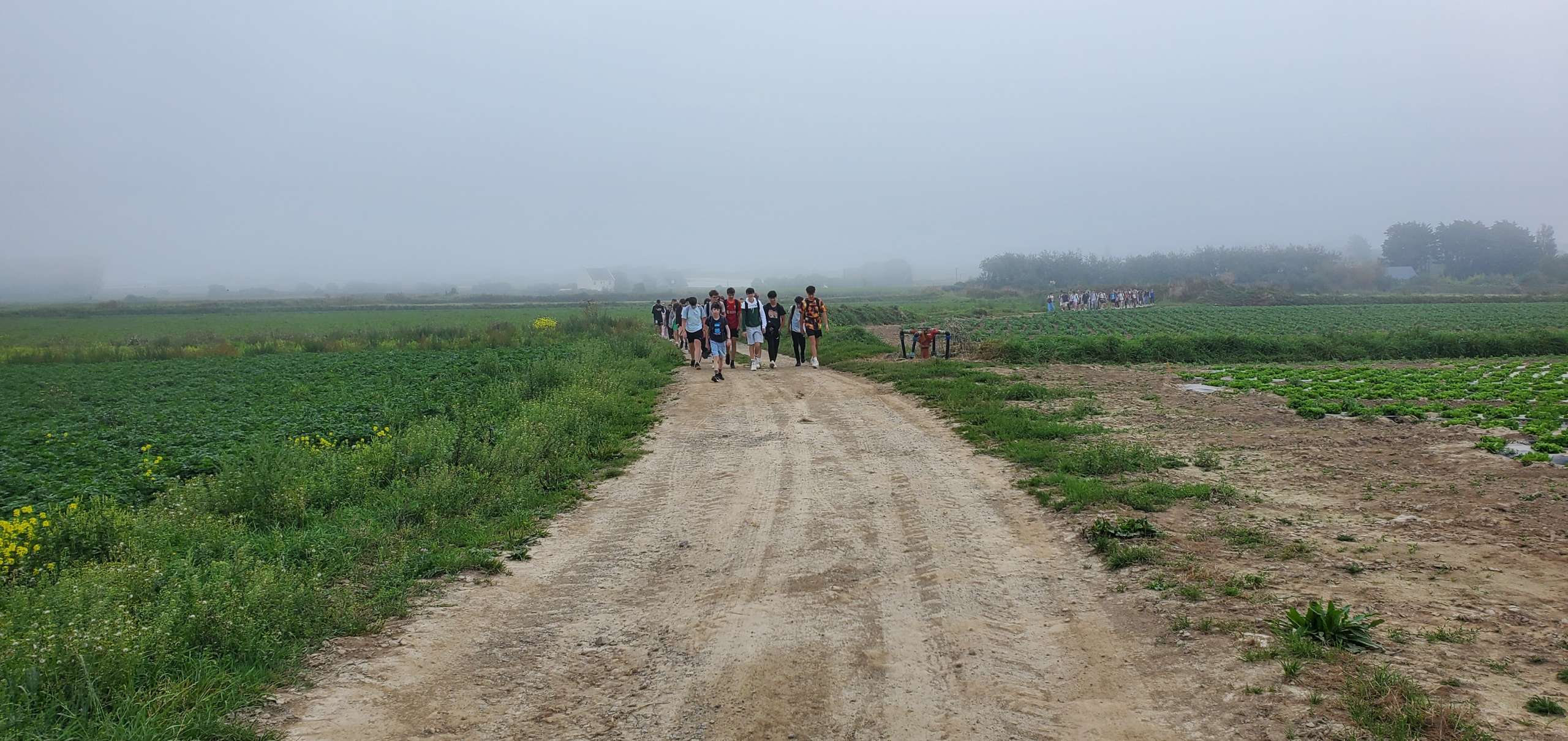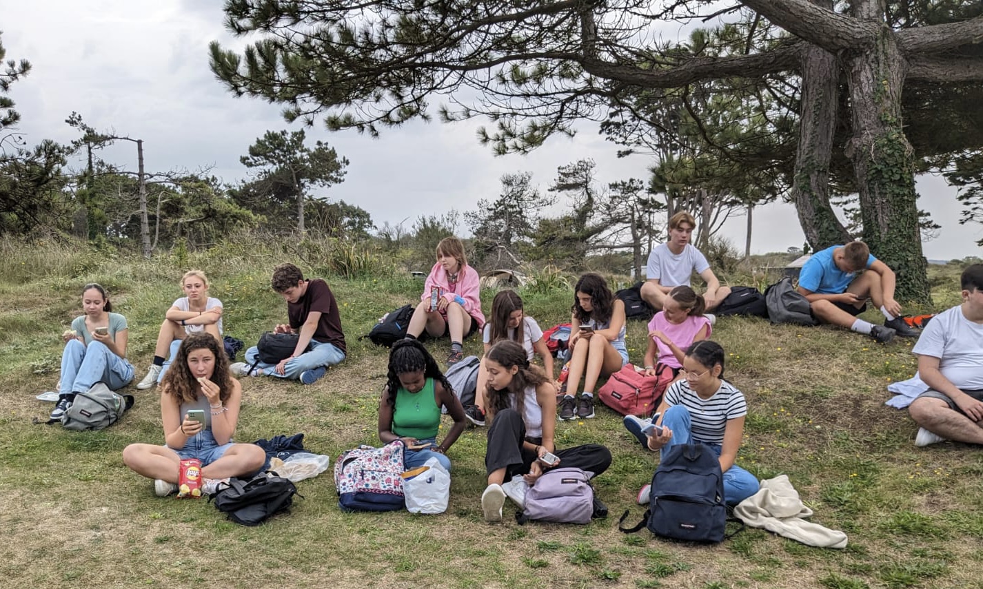 Direction la plage du Dossen à pied, depuis le Lycée, munis de sacs à dos, de pique-niques, de crème solaire et de notre bonne humeur habituelle. La route fut moins longue cette année : les élèves de Seconde ont la pêche et ont instauré un bon rythme de marche dès le départ. Il faut noter que les professeurs étaient à la hauteur et ont gardé le cap !