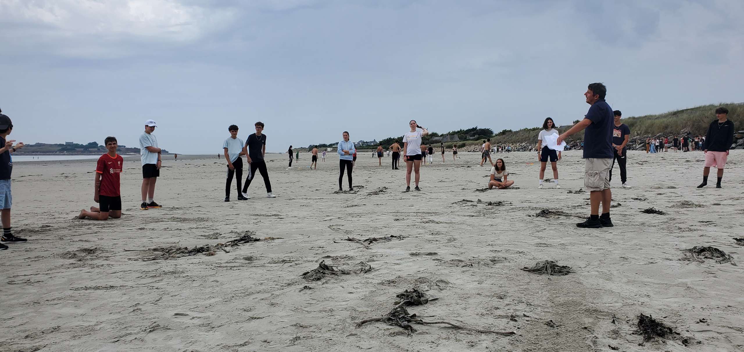 La journée s’est très bien passée, majoritairement sous le soleil et à la recherche d’un peu d’ombre. Après le pique-nique à l’intérieur des dunes, nous avons investi la plage et les jeux ont pu commencer.