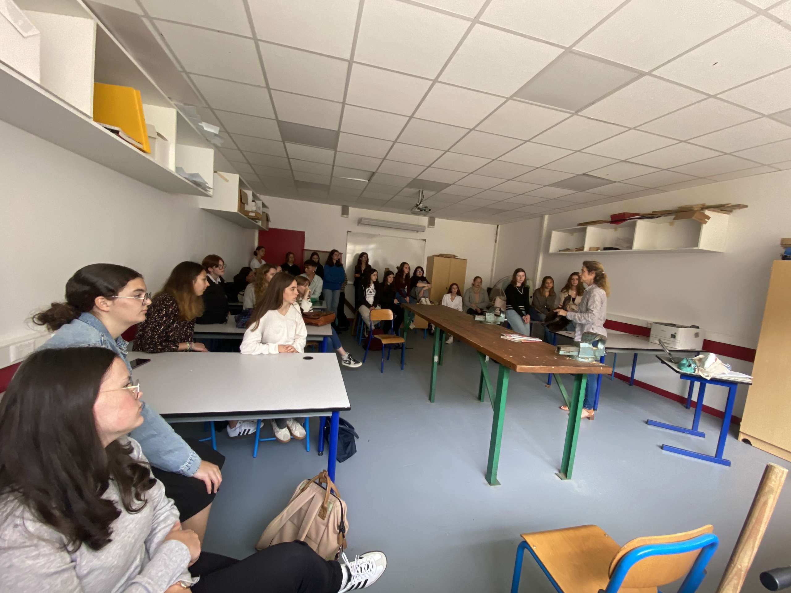Au lycée, Mme Chauvet est aux rênes de l’atelier couture/stylisme proposé aux élèves tous les lundis de 12h55 à 13h45.