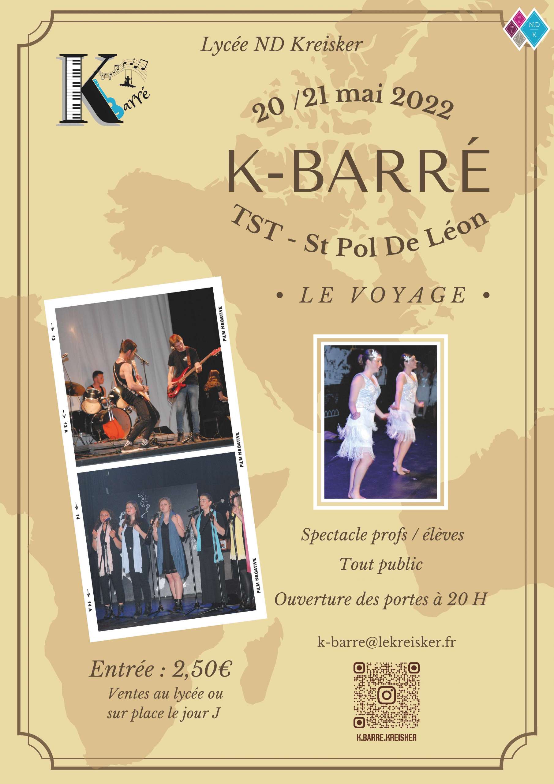 Mme Souffrant, Mme Chauvet, Mme Queinnec et M. Salaün tiennent à féliciter chaleureusement tous les participants pour leur engagement tout au long de l’année, y compris pendant les pauses, les week-ends et les vacances. L’équipe a été particulièrement touchée par les surprises émouvantes du samedi soir : une vidéo souvenir retraçant 10 ans de K-Barré avec des témoignages d’anciens, un gâteau, des bougies, des fleurs… et beaucoup d’émotion. Merci aux anciens élèves revenus sur scène, aux enseignants impliqués, à Philippe notre régisseur, à M. Le Gall, à Yann Laurent, et à la mairie pour le prêt des salles. Une page se tourne… mais quelle belle histoire ! Ce dixième K-Barré restera le plus marquant.
