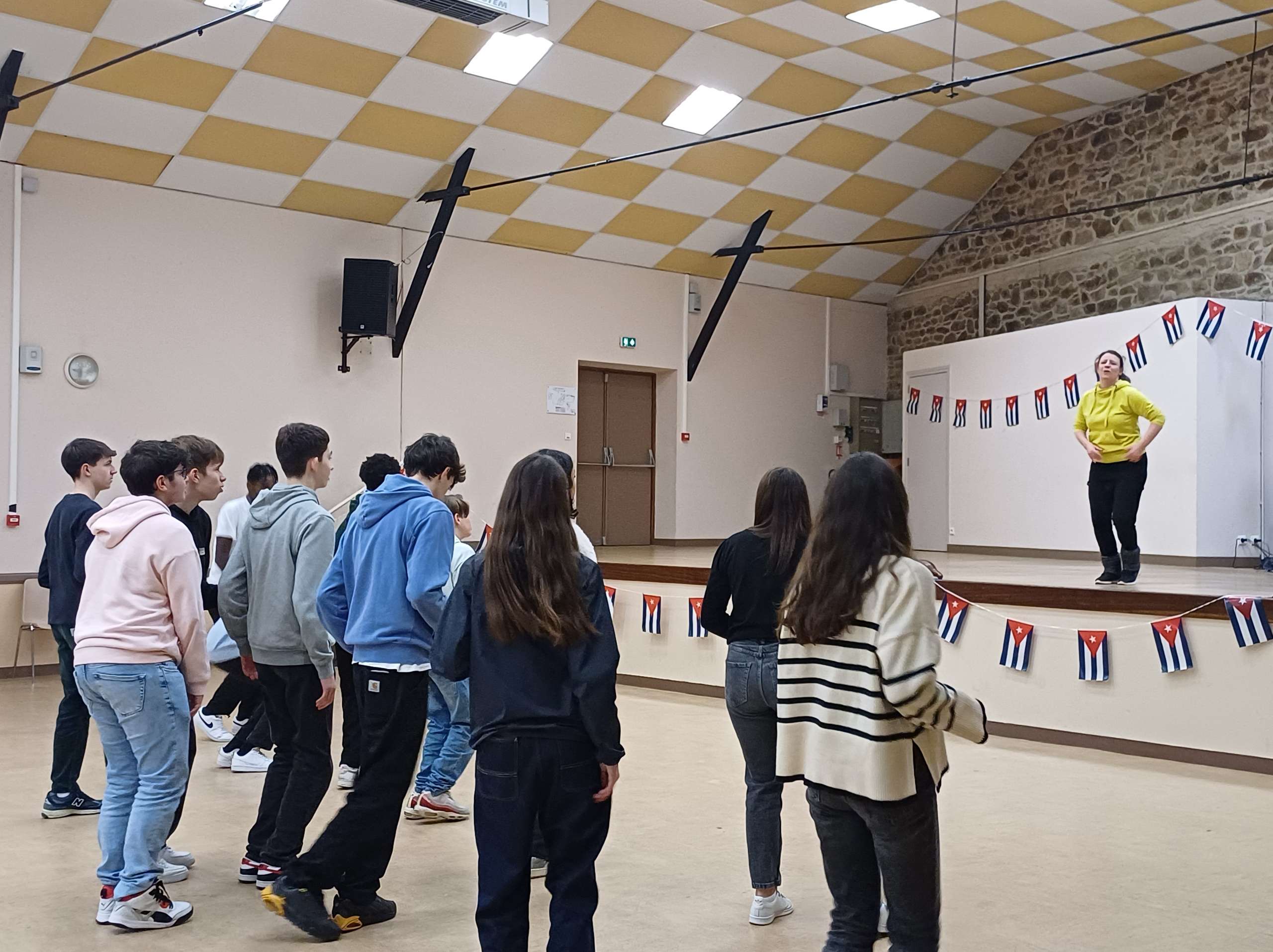 Cette année et pour la quatrième fois consécutive, les professeurs d’espagnol ont proposé aux élèves de Seconde générale de participer à un cours d’initiation aux rythmes latinos (Salsa, Reggaeton, Rumba, etc.) animé par l’association “Ritmo cubano” de Saint-Martin des Champs.