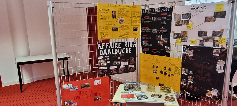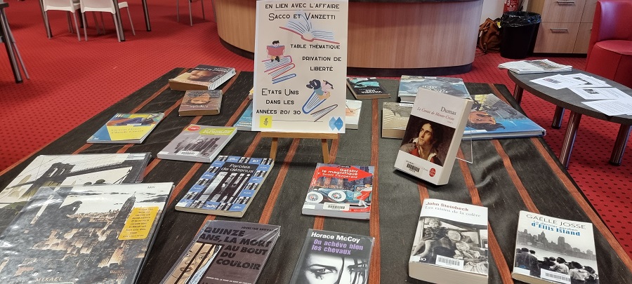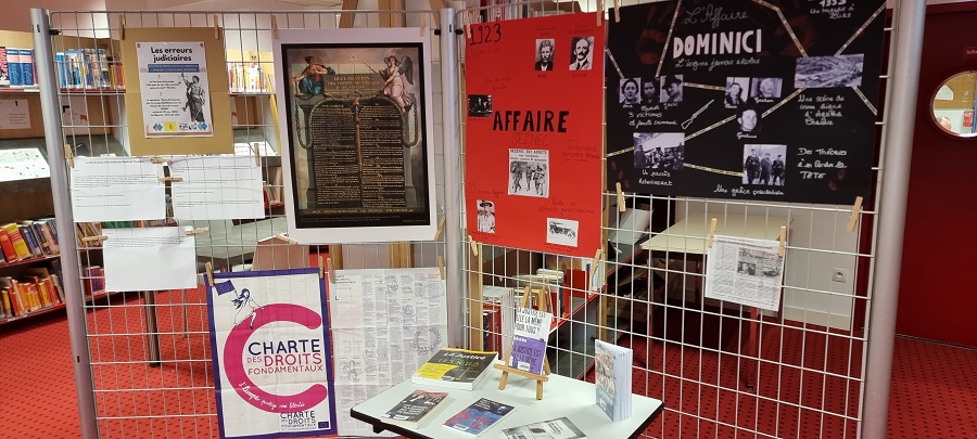 Les Terminales de l’option DGEMC (Droit et Grands Enjeux du Monde Contemporain) ont travaillé sur le thème des erreurs judiciaires et proposent une expo au CDI. Les 2nde générale et professionnelle GATL, eux aussi, ont étudié les notions de liberté au pluriel et au singulier, les textes de la déclaration des droits de l’homme, les droits humains, le thème de la peine de mort, la présomption d’innocence puis l’affaire Sacco et Vanzetti.