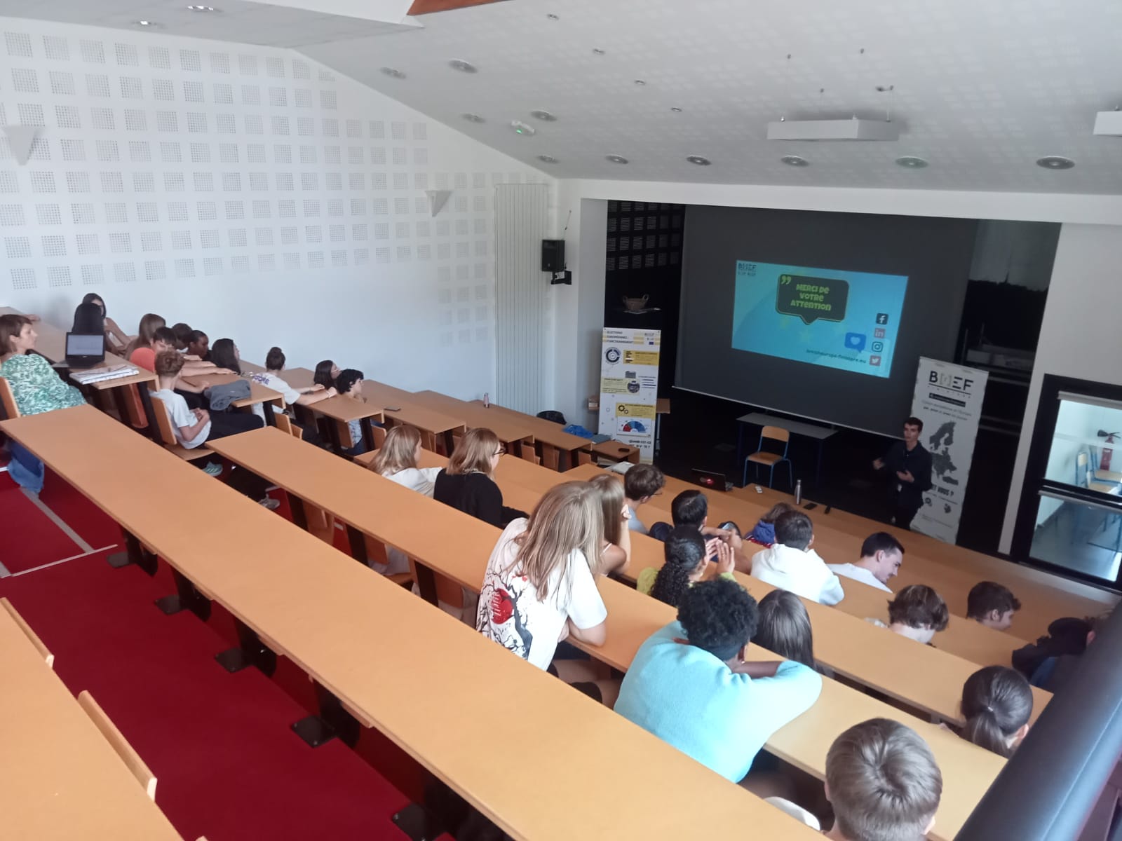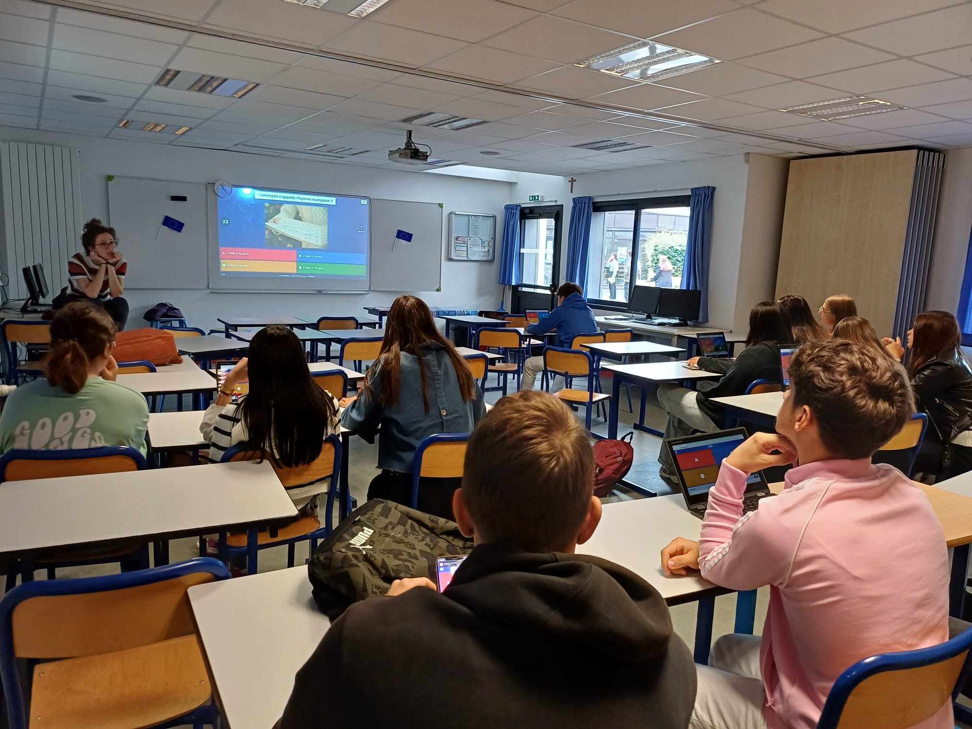 Jeudi, Marie-Caroline NIVAIGNE, Directrice par intérim et responsable des animations territoriales Maison de l’Europe de Rennes et Haute Bretagne – Centre EUROPE DIRECT, a proposé différentes activités dynamiques et interactives type Kahoot à tous les élèves de 3ème Prépa Métiers et 2nde professionnelles.