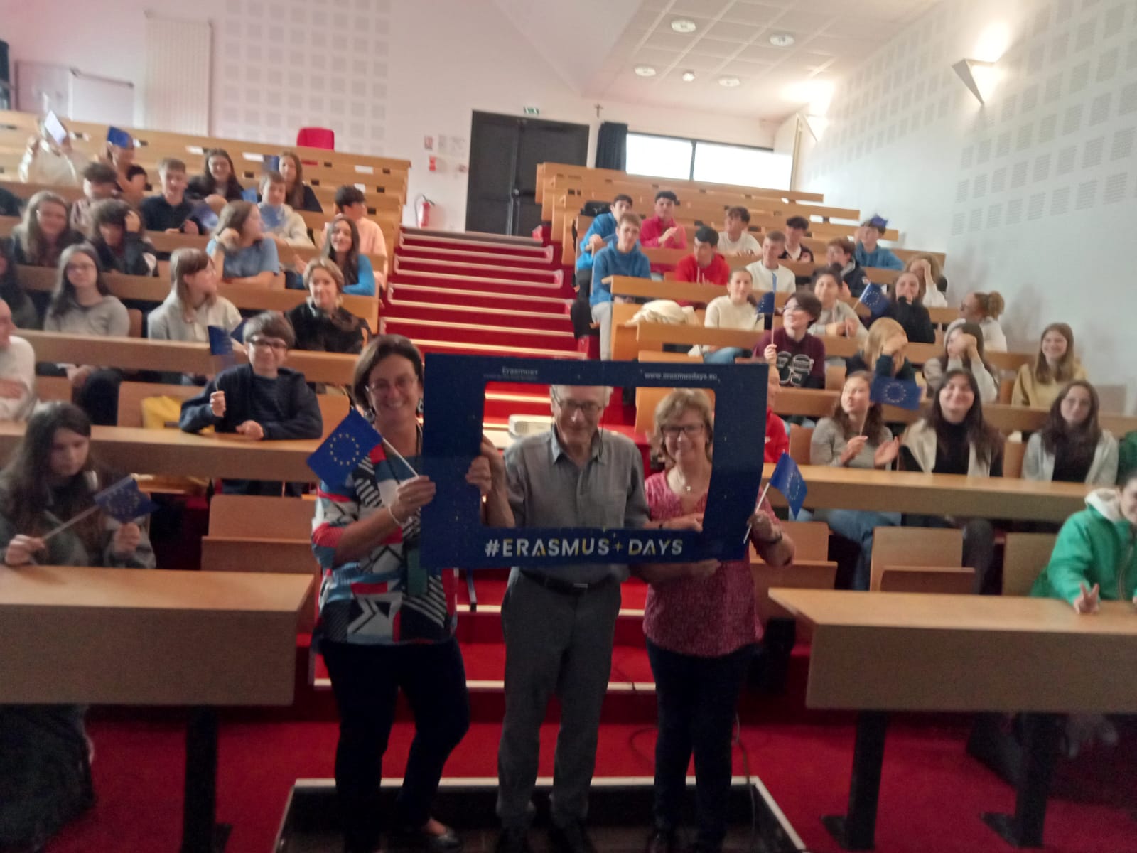 La semaine “ERASMUS DAYS” a commencé le lundi 9 octobre par l’intervention de M. Frank COCAIGN qui a présenté à l’ensemble des 2ndes l’importance des mobilités individuelles pour partir en voyage dans l’Union Européenne. Puis, les lycéens partis l’année dernière à Benicarló ont fait le récit de leurs aventures aux 2ndes et 1ères.