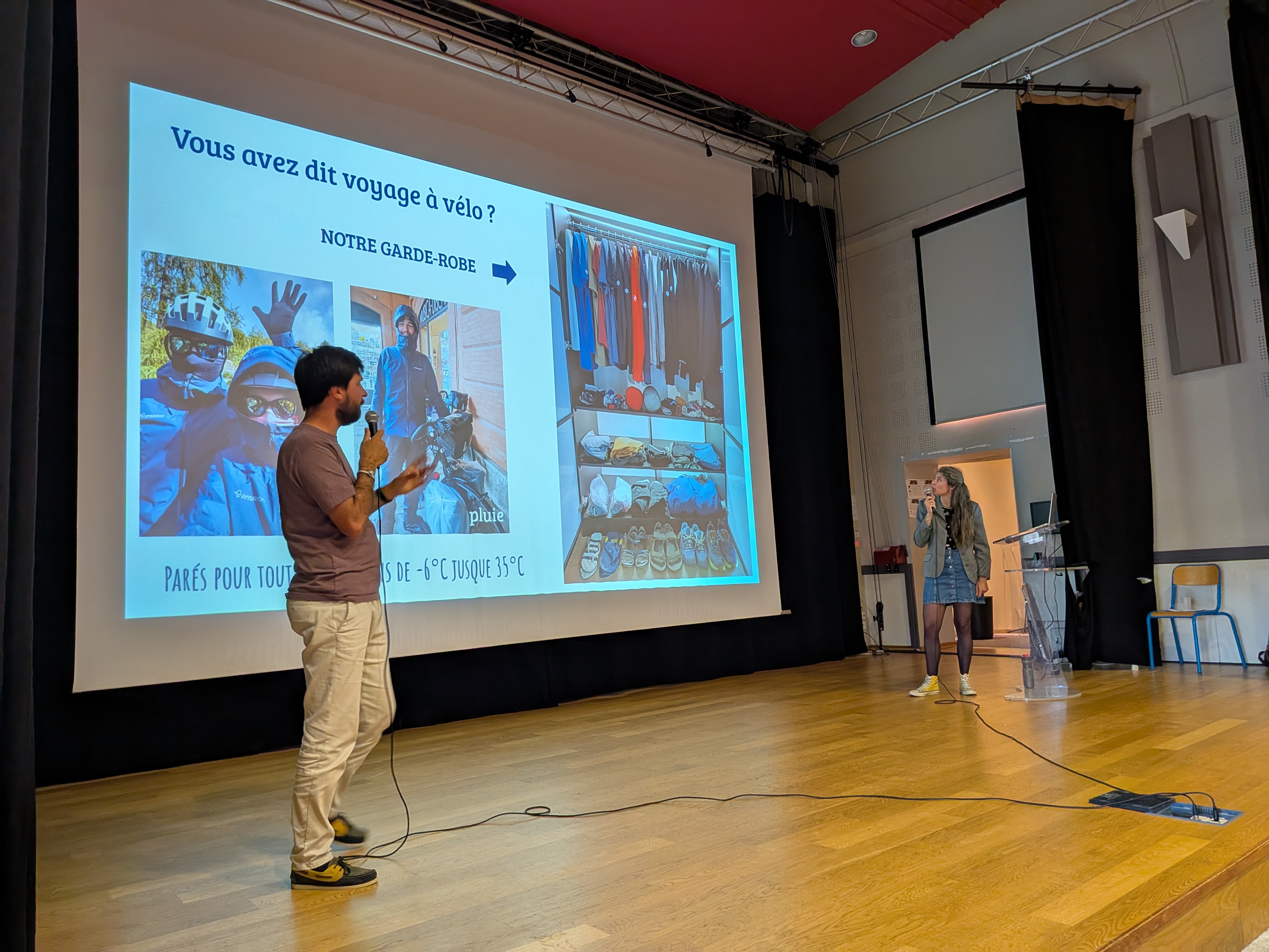 Le 14 octobre, 300 élèves de 1ère GT et Pro ont assisté à une conférence présentée par Camille Moutinho et Mathis Le Pallier qui ont effectué un tour d’Europe à Vélo pendant 14 mois. Partis de chez eux à Saint Pol de Léon, ils ont traversé 24 pays européens du Nord au Sud.