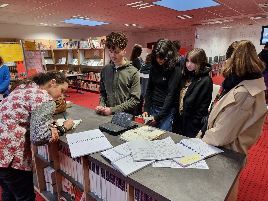 Invitée par les enseignantes de HLP, elle était accompagnée de Mme Maindron, de la librairie Livres In Room.