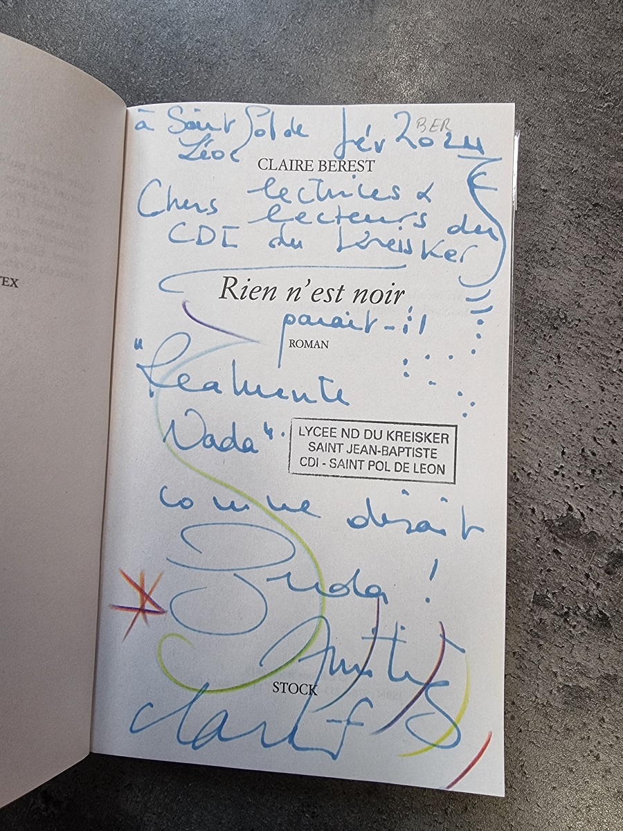 Dans le cadre de l’étude de son roman “Rien n’est noir”, les élèves de 1ère et Term de spécialité HLP (Humanités, Littérature et Philosophie) ont eu le privilège de rencontrer l’auteure Claire Berest.