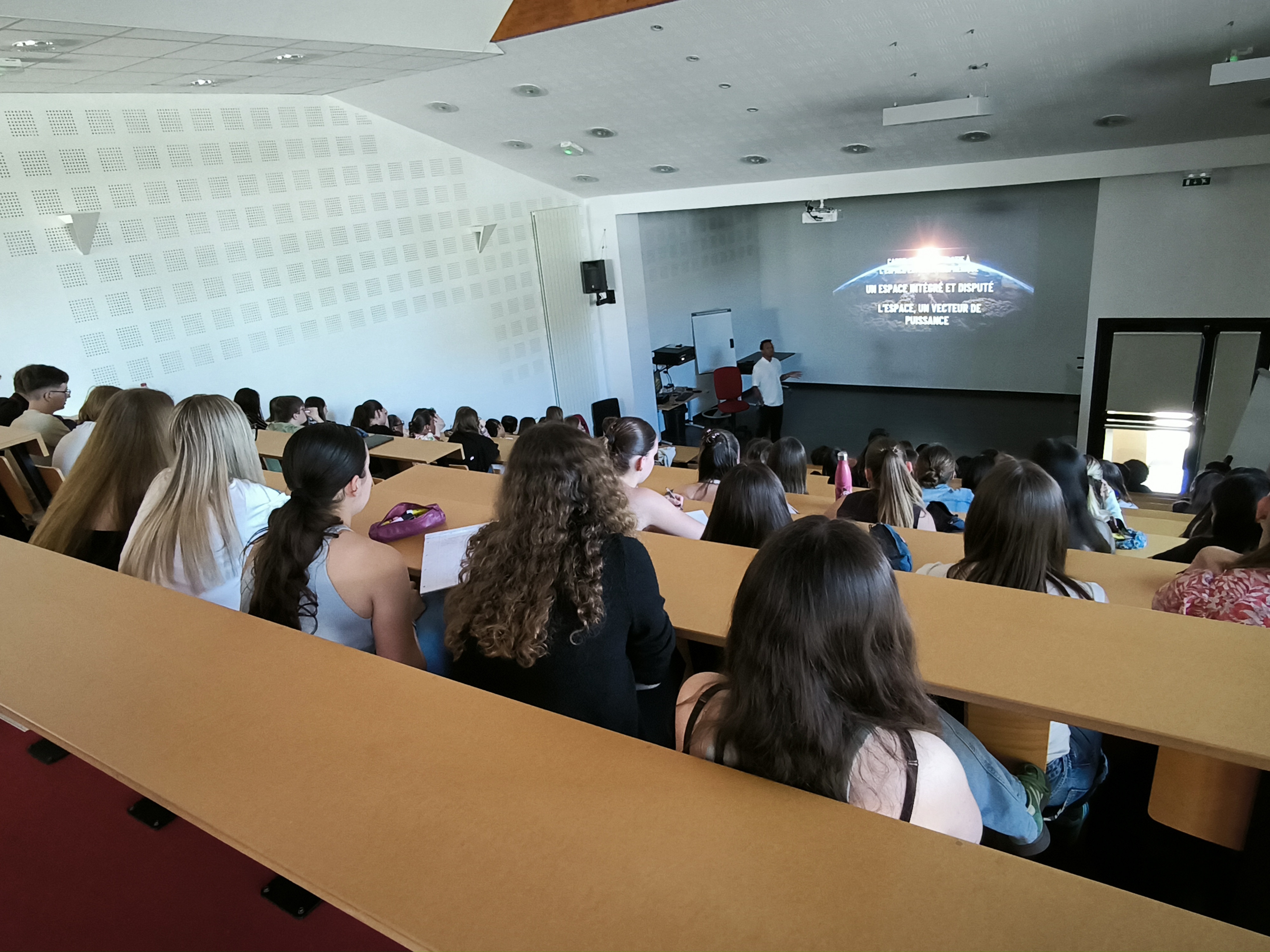 Il a d’abord présenté son parcours, qui l’a notamment amené à l’Université de Séoul, aux Etats-Unis et à l’ambassade de France au Canada, avant de proposer une excellente conférence sur la géopolitique et le droit de l’espace, dont il est l’un des rares spécialistes en France.