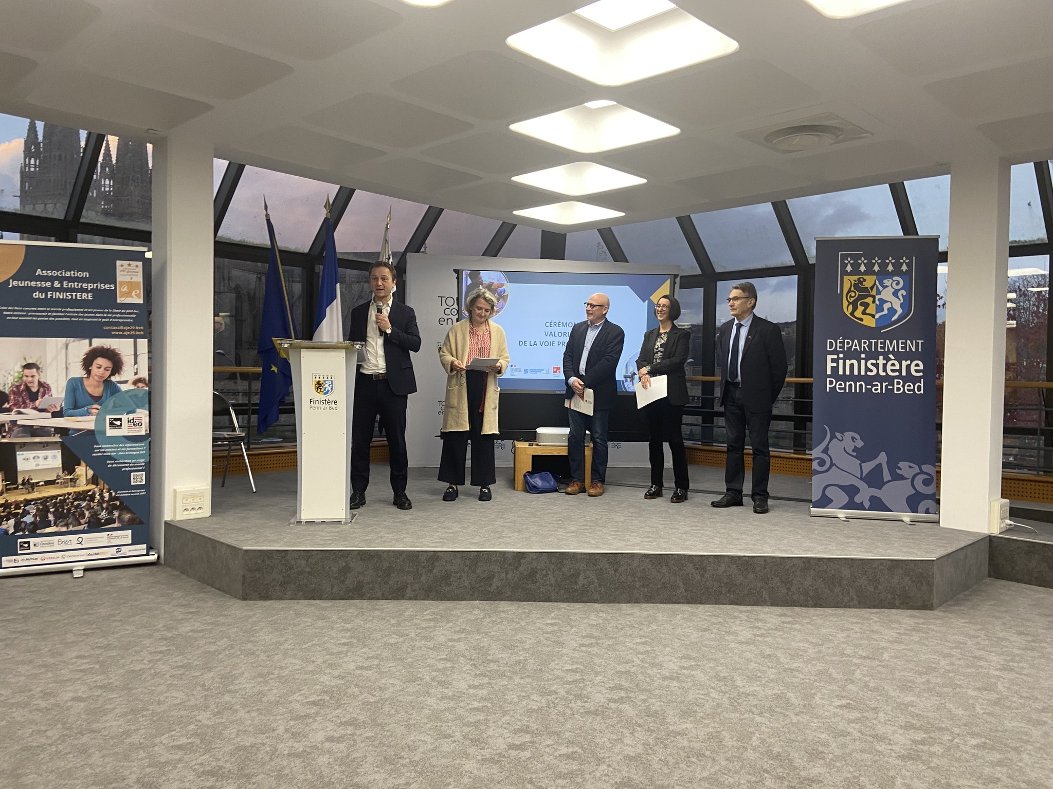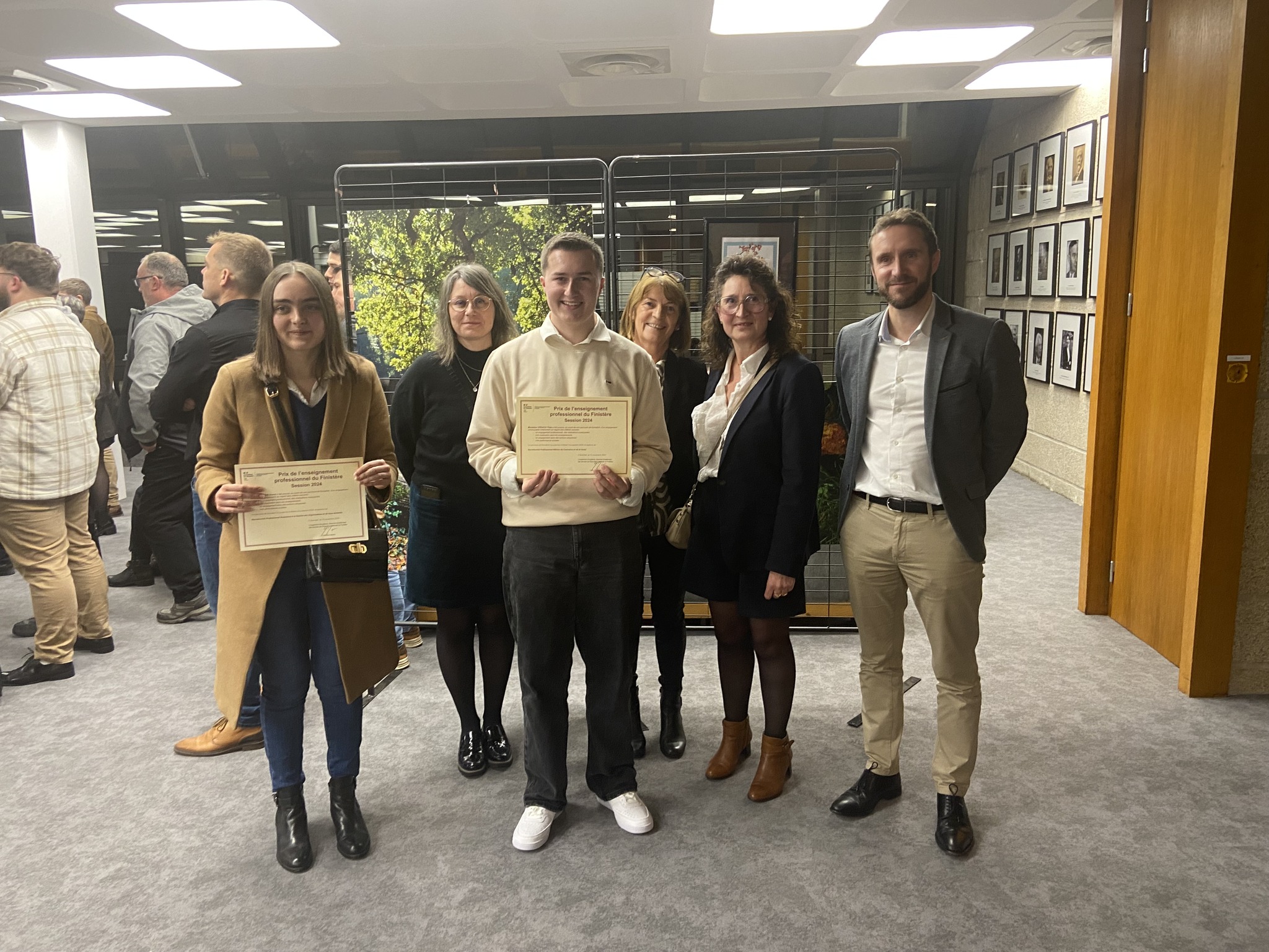 Lundi 25 novembre 2024, à la Maison du Département à Quimper, deux de nos anciens élèves, Théo CREACH et Emma VOIRIN, ont été mis à l’honneur lors de la Cérémonie de Valorisation de la Voie Professionnelle, organisée par l’AJE (Association Jeunesse et Entreprises).