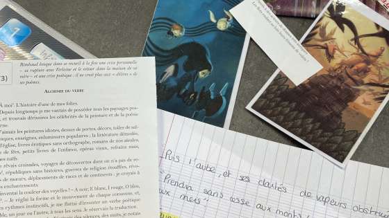 Un atelier d’écriture au CDI lors des séances dédoublées de français. Moment privilégié en petits groupes où les élèves de 2nde ont dû piocher des vers dans des enveloppes, des petits bouts de poèmes offerts en lecture. Puis dans d’autres enveloppes ils ont reçu une image. De ces petits rien…