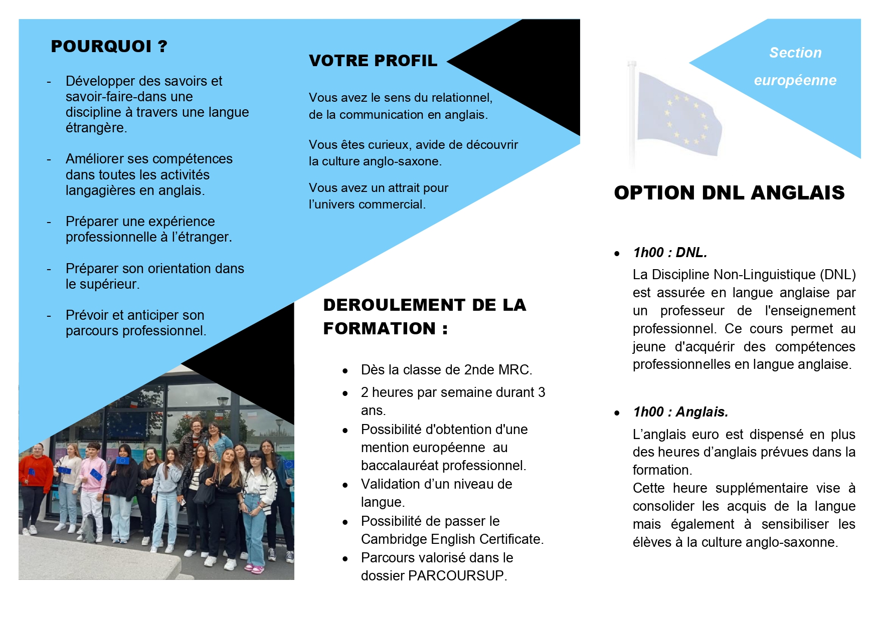 Jeudi 26 septembre, la journée a commencé par l’intervention de l’agence d’Intérim ADECCO de Landivisiau autour de l’entretien d’embauche, du CV et de la lettre de motivation. Puis, les élèves ont bénéficié de trois interventions : Groupama assurances, Morlaix communauté et Barraine Immobilier avant de terminer la journée par des petites activités autour de l’Europe animées par l’association des “Jeunes européens” basée à Rennes.