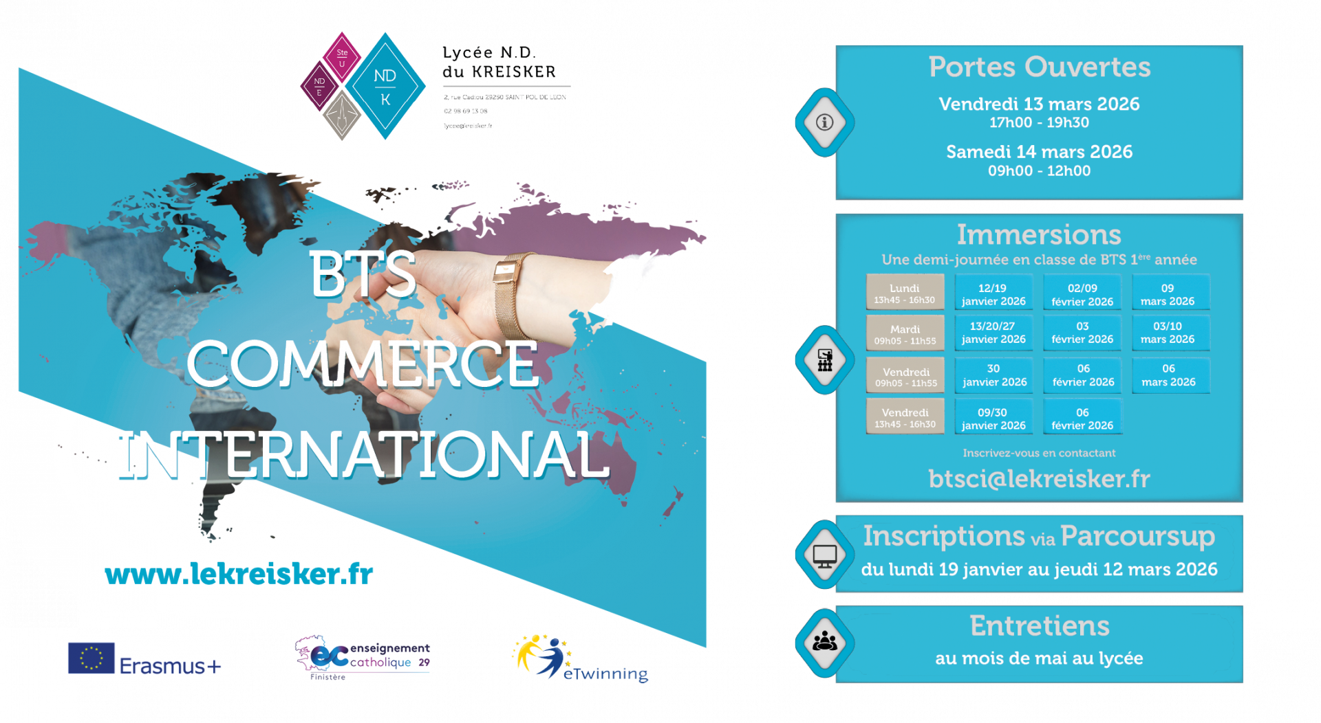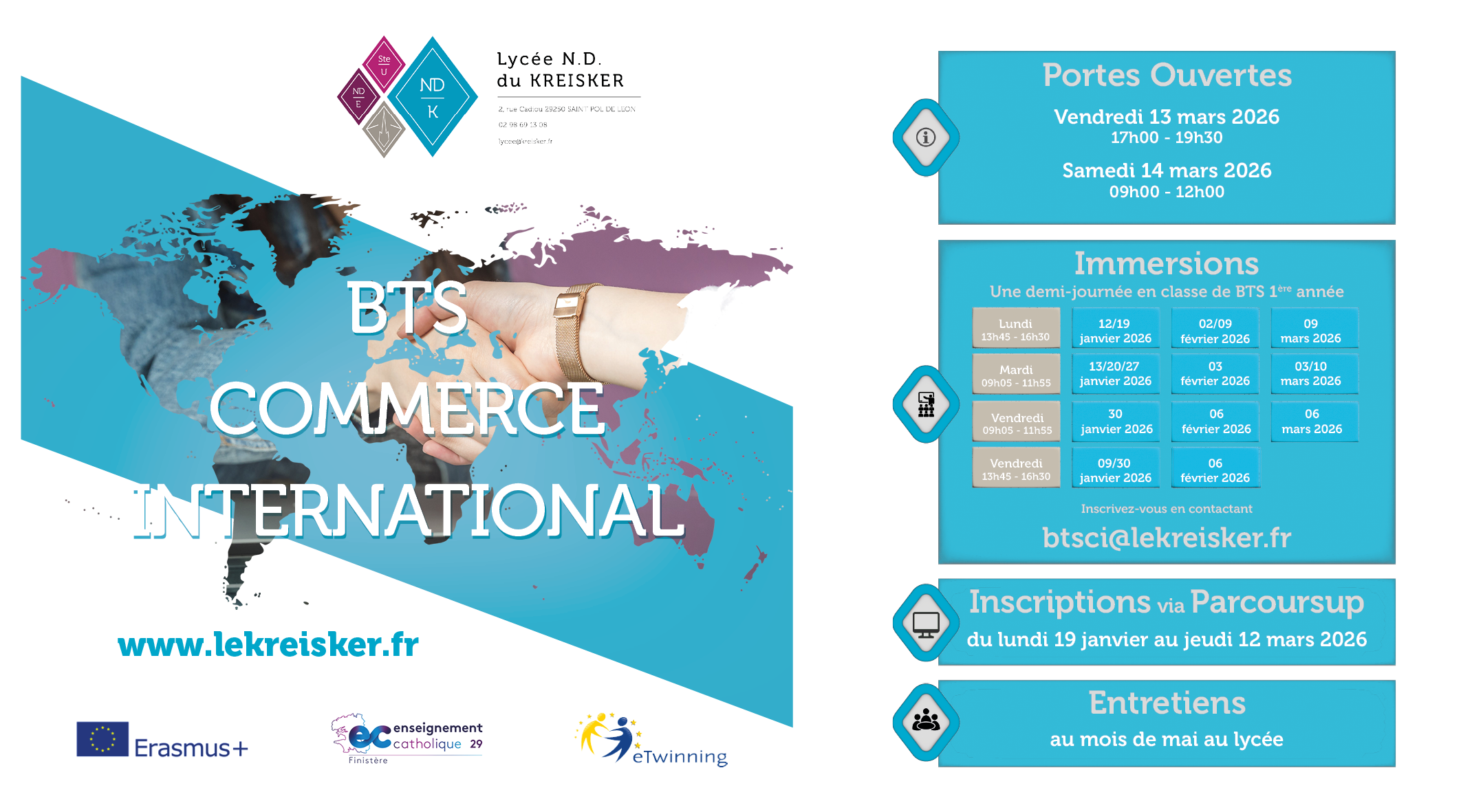 Le BTS CI est une formation professionnelle reconnue et adaptée aux besoins des PME souhaitant se développer à l’international. Ce cursus permet d’obtenir des compétences dans la gestion et le suivi de la relation commerciale dans un contexte interculturel : communiquer, négocier, vendre, acheter et gérer les relations avec des acteurs internationaux sont les principales activités menées. C’est un excellent compromis entre études commerciales longues et formation courte et professionnalisante.