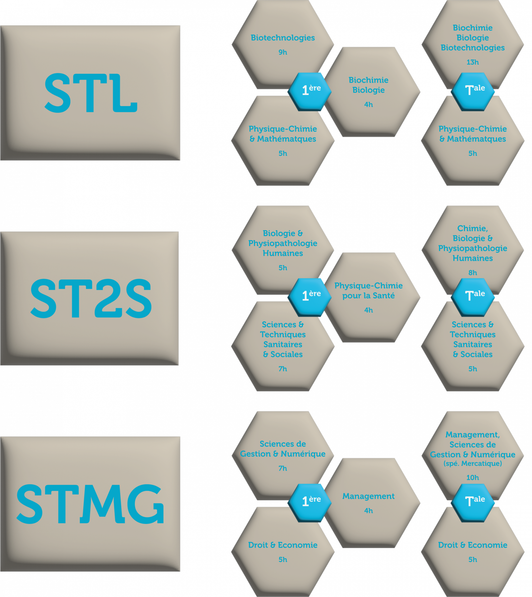À l’issue d’une seconde générale et technologique, les élèves peuvent s’orienter vers l’une des séries de la voie technologique. Après le baccalauréat, ils peuvent ensuite poursuivre en études supérieures, notamment technologiques : BTS, DUT, …