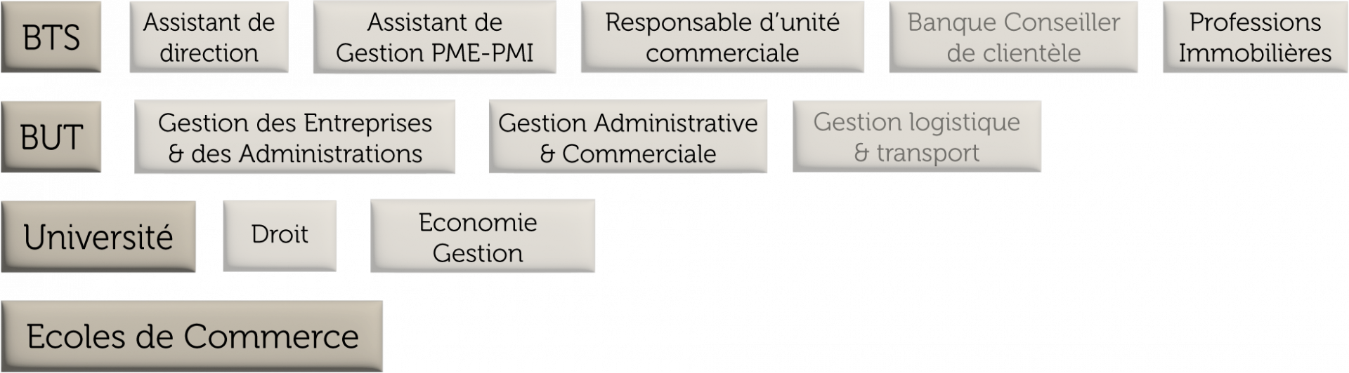 Cette filière s’adresse aux élèves intéressés par le fonctionnement des entreprises : les relations au travail, le marketing, l’’analyse des décisions, des stratégies.