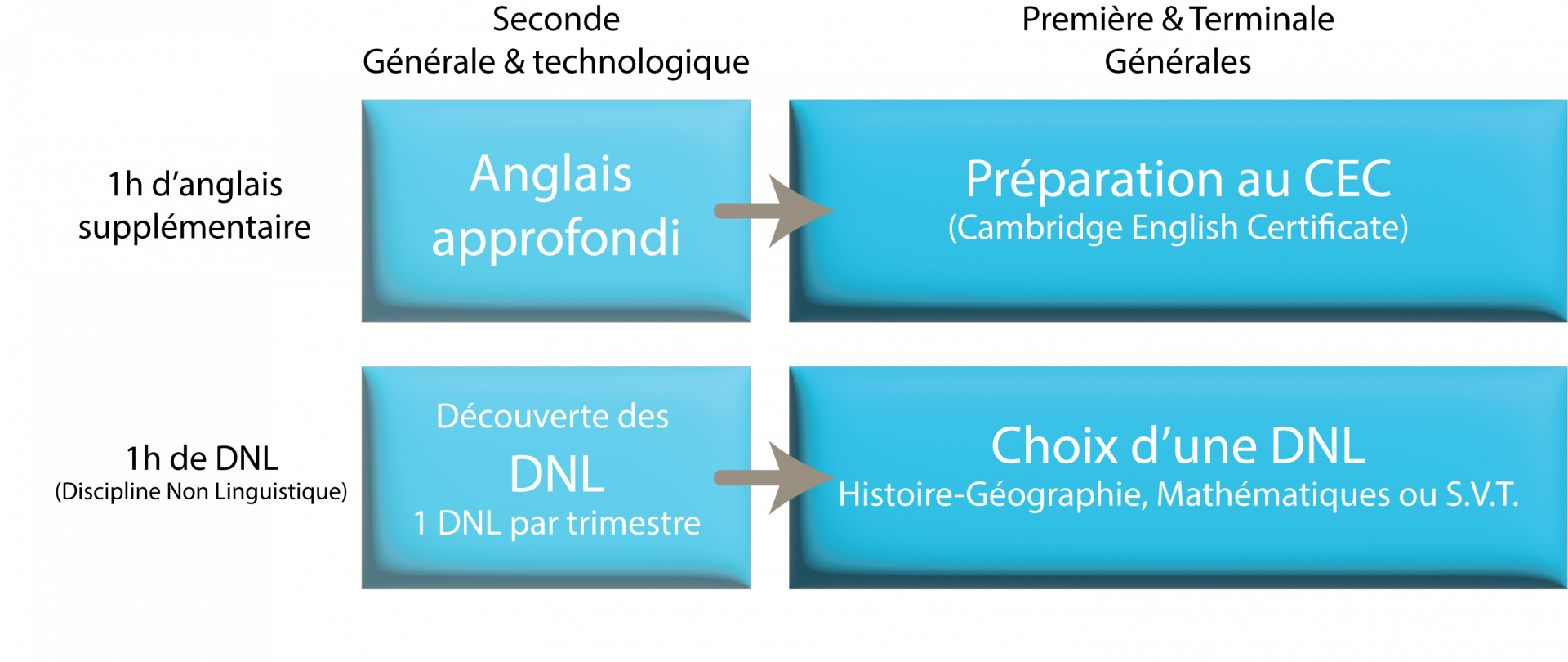 La DNL choisie est une option facultative pour le baccalauréat. L’évaluation est constituée à 20% des notes trimestrielles et à 80% d’une épreuve orale en fin de terminale.