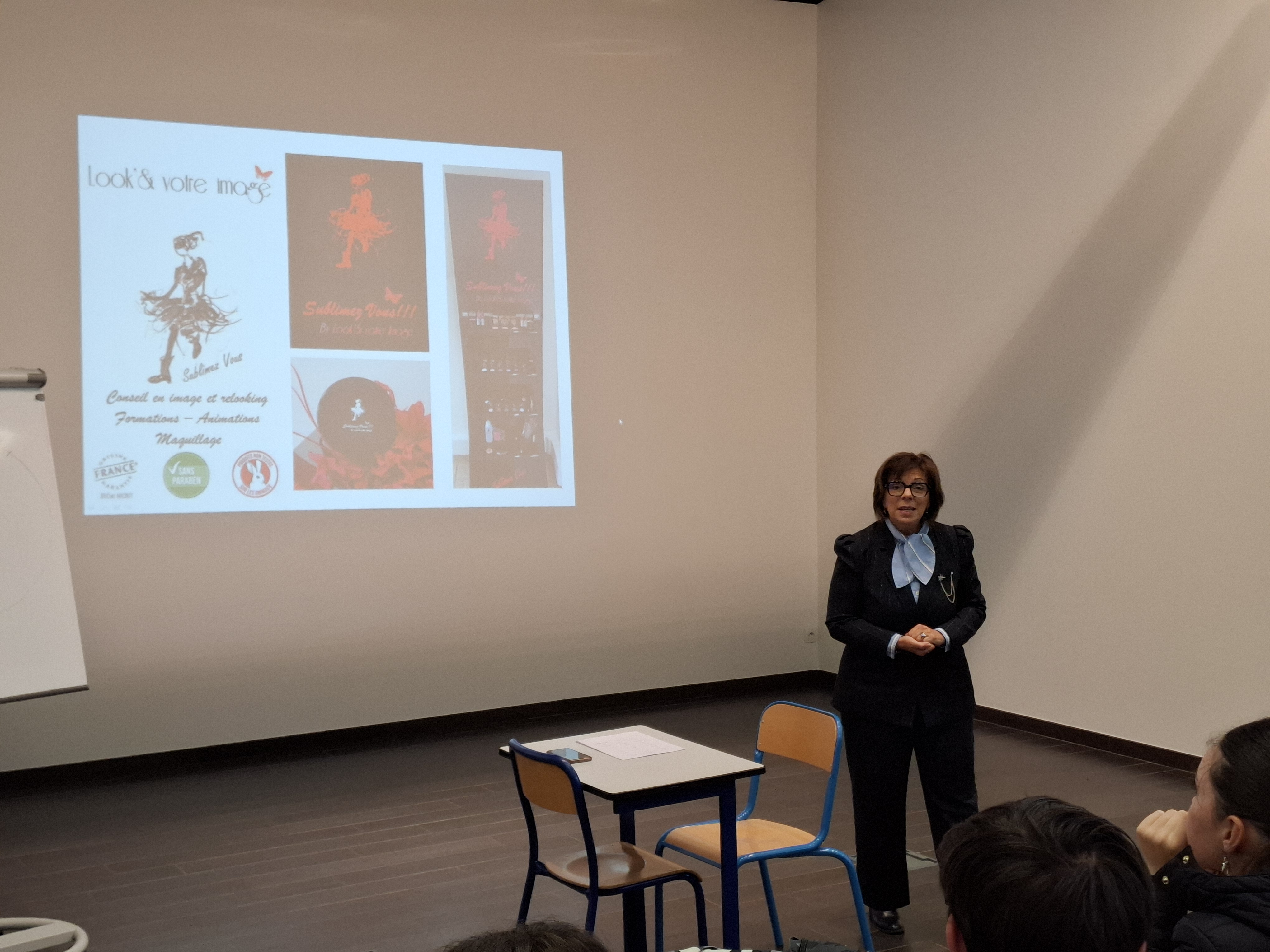 Pour clôturer cette journée, les deux groupes ont eu l’opportunité de participer à l’atelier de Madame Valérie Guennec, responsable de l’entreprise hashtagLOOK’&VOTRE IMAGE, spécialisée dans le conseil en image personnelle et professionnelle. Avec enthousiasme, elle a sensibilisé les élèves à l’importance de l’image dans la vie personnelle comme dans le monde professionnel, en montrant comment confiance en soi, posture et communication visuelle peuvent devenir de véritables atouts.